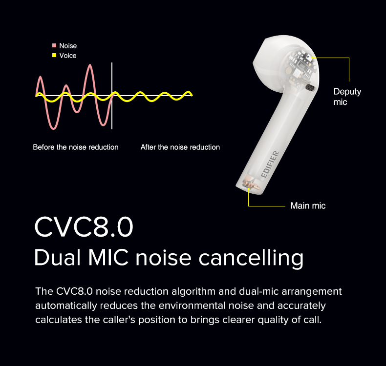 • CVC8.0 dual microphone noise reduction