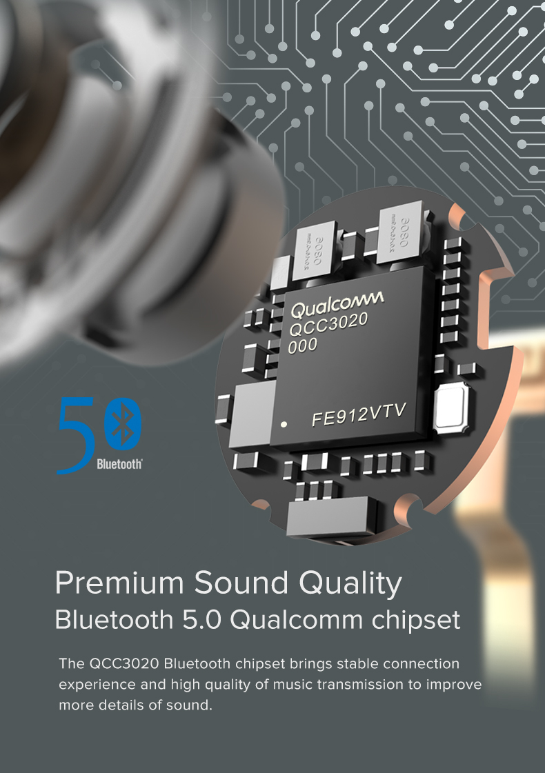 • Bluetooth V5.0, faster transmission speed and more stable onnection