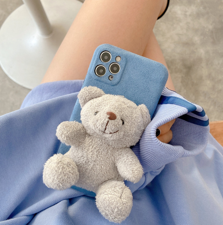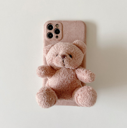 Bear 12ProMax Pink Flannel Sitting 3D Bear 12mini Pink Flannel Sitting 3D Bear Apple 11