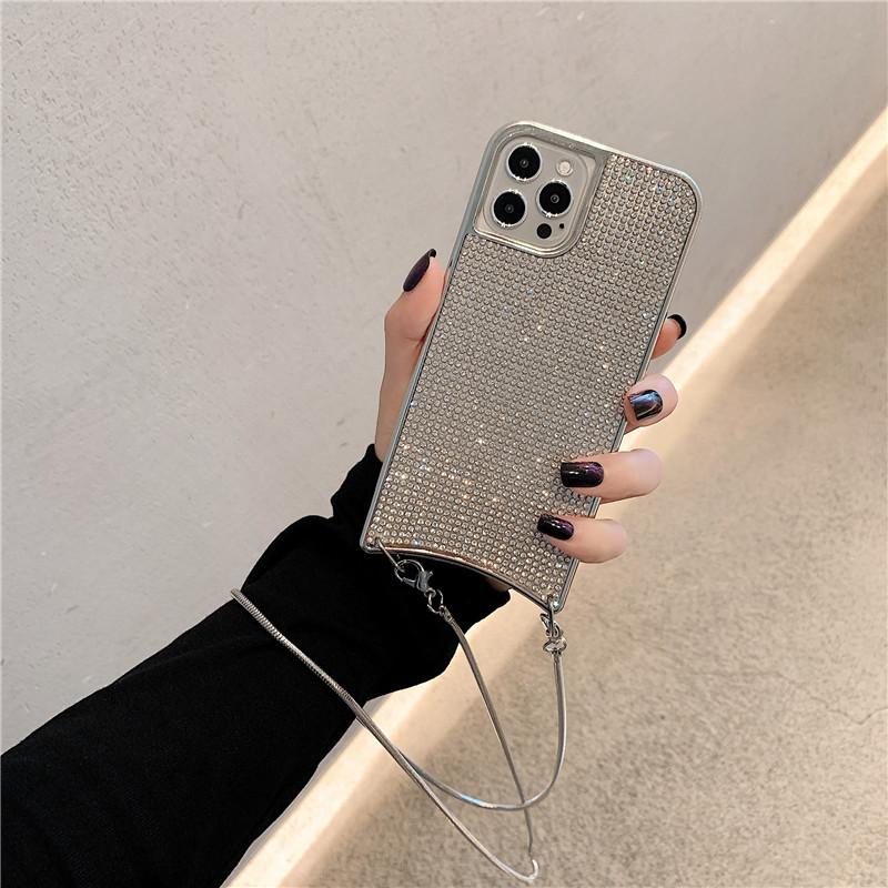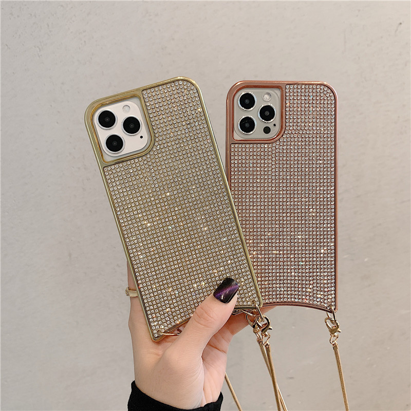 Compatible with Apple, Sparkle Glitter Strap Cord Chain Phone Necklace Lanyard Phone Case Carry Cover Hang For iPhone 12 11 Pro XS Max XR X 7 8 Plus 12