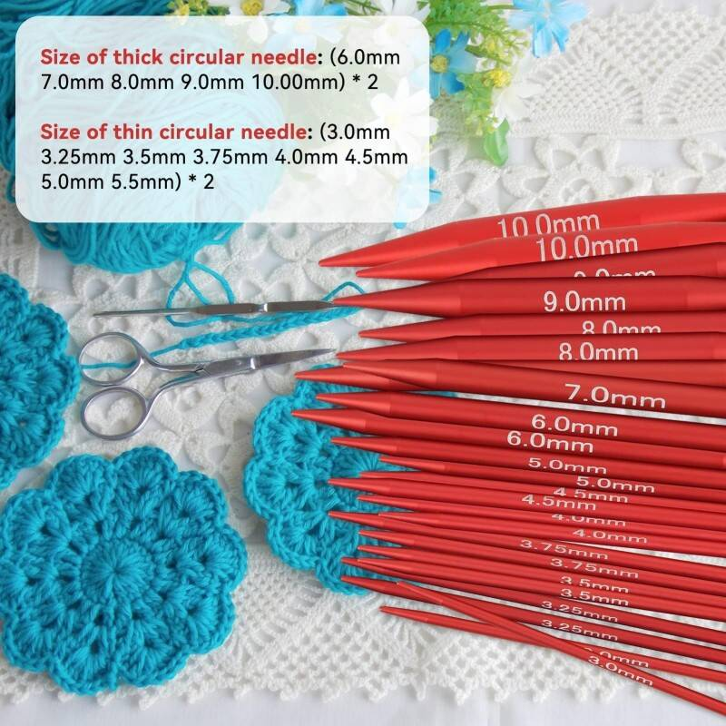 Complete Interchangeable circular knitting needles set with 13 Sizes and Multiple Cable Lengths, Perfect for Sweaters, Scarves, Hats, and Blankets – Lightweight, Smooth, Durable, and Ideal Gift for Knitting Lovers