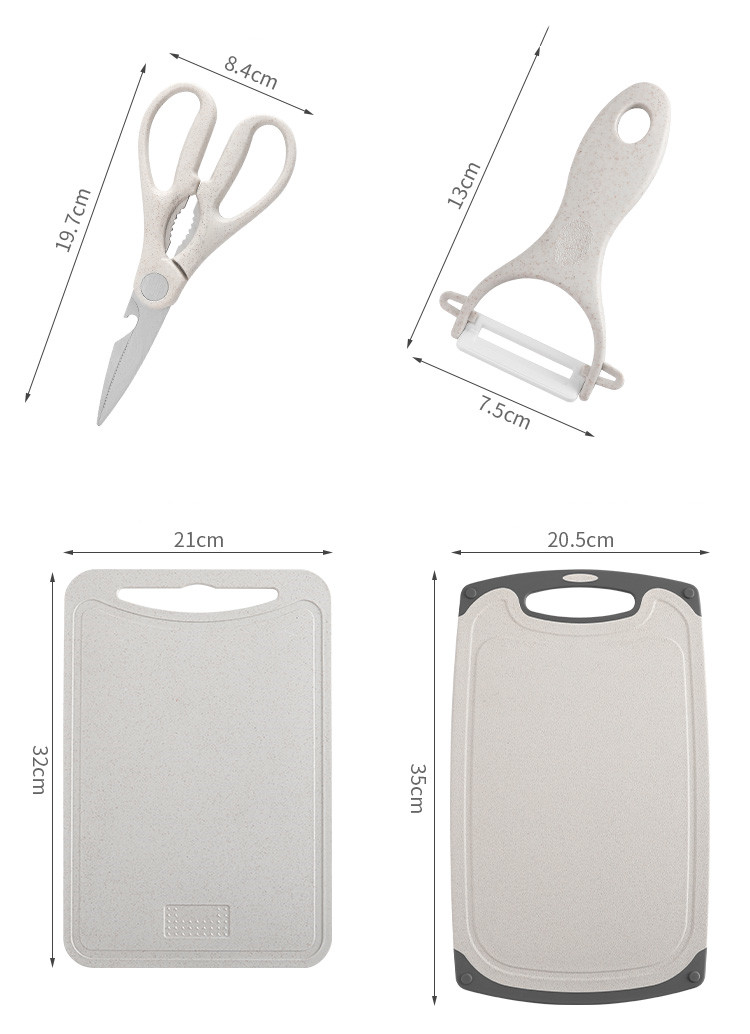 H: Nordic beige non-slip cutting board full set of knives with knife cover