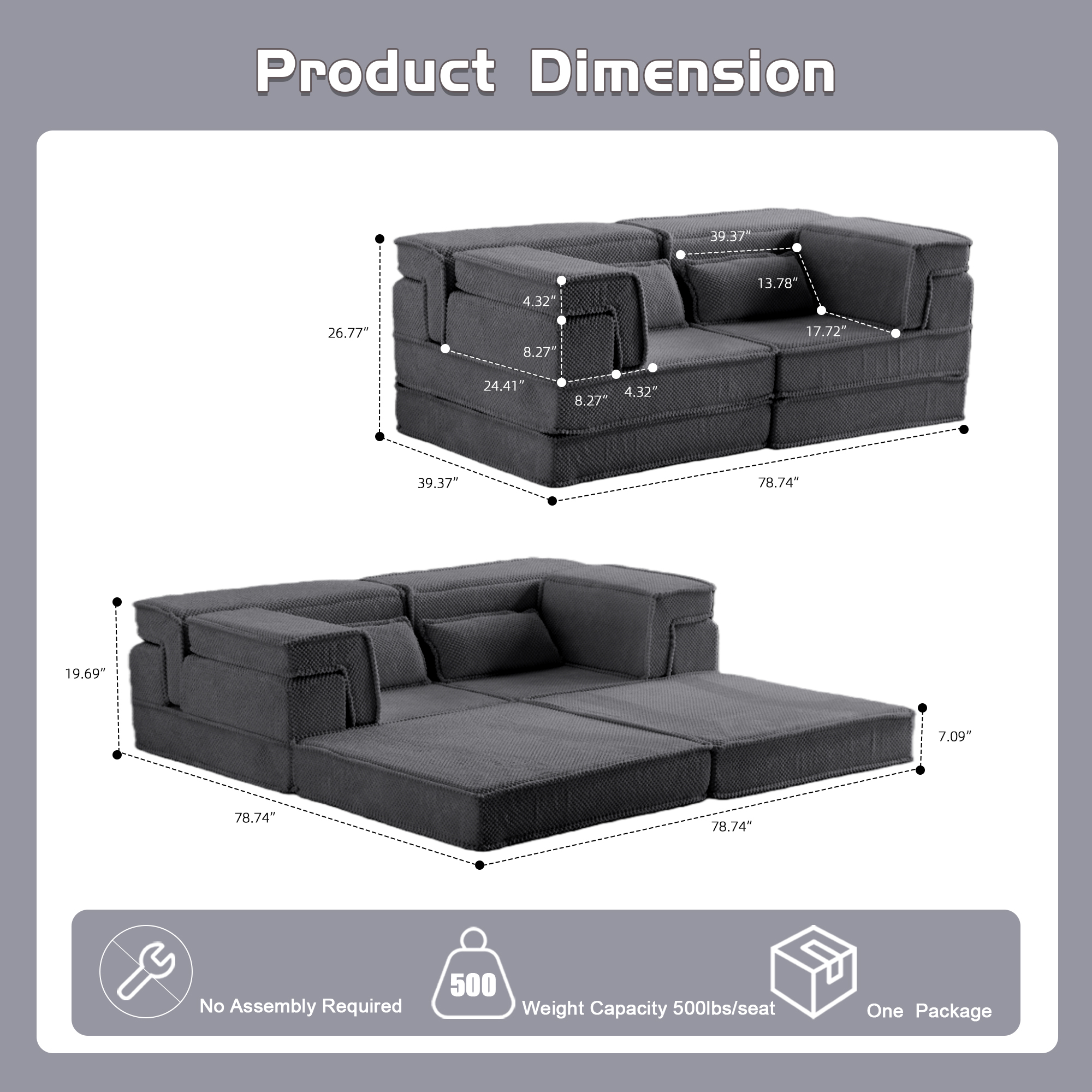 Product Name:Compression Mahjong Sofa,Convertible Floor Sofa Bed,DIY Boneless Modular Sectional Sofa,No Assembly Required,Circle fleece fabric,Modern Oversized Loveseat,Dark Grey