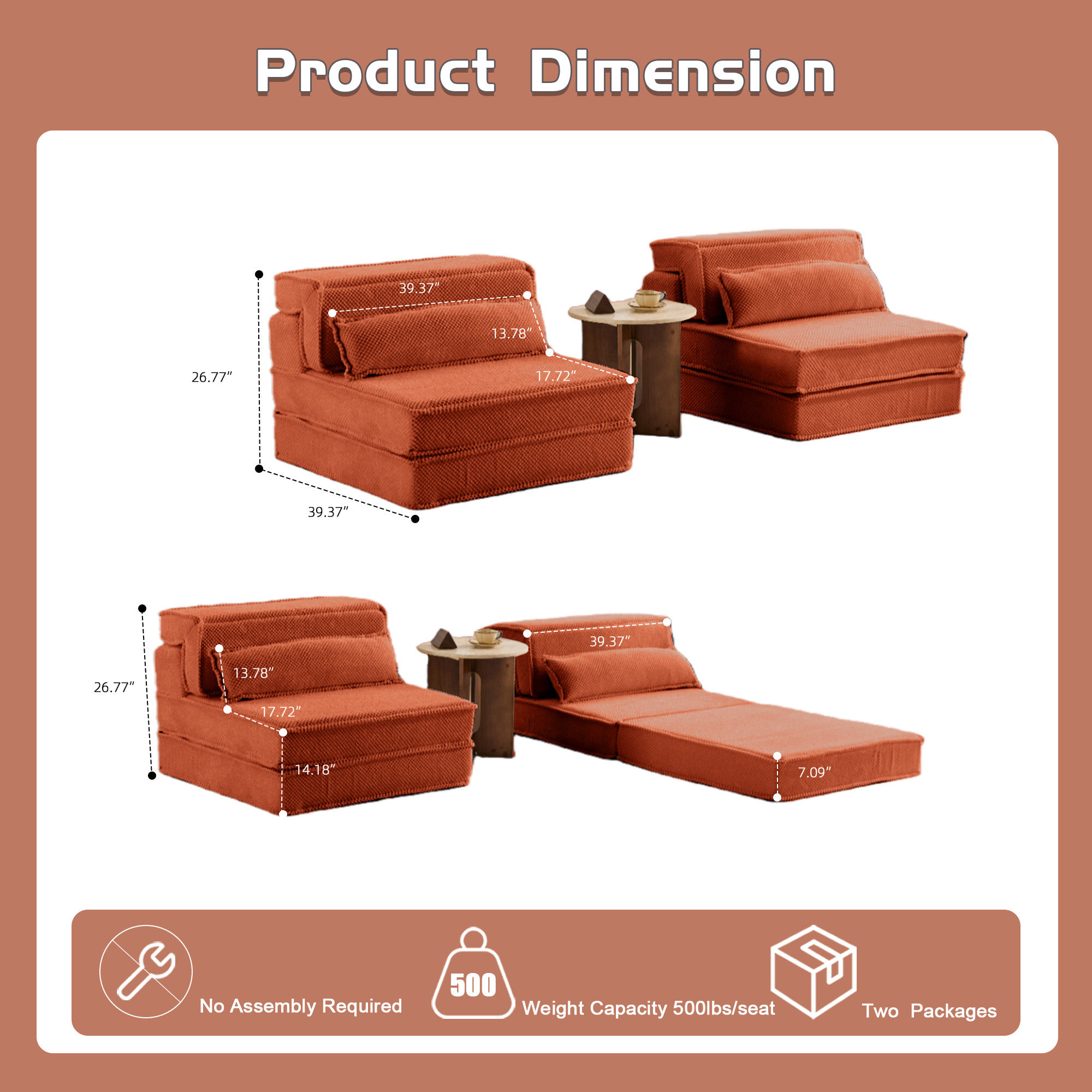 Product Name:Compression Mahjong Sofa,Convertible Floor Sofa Bed,DIY Boneless Modular Sectional Sofa,No Assembly Required,Circle fleece fabric,Oversized 2 Seater with 2 Pillows,Orange