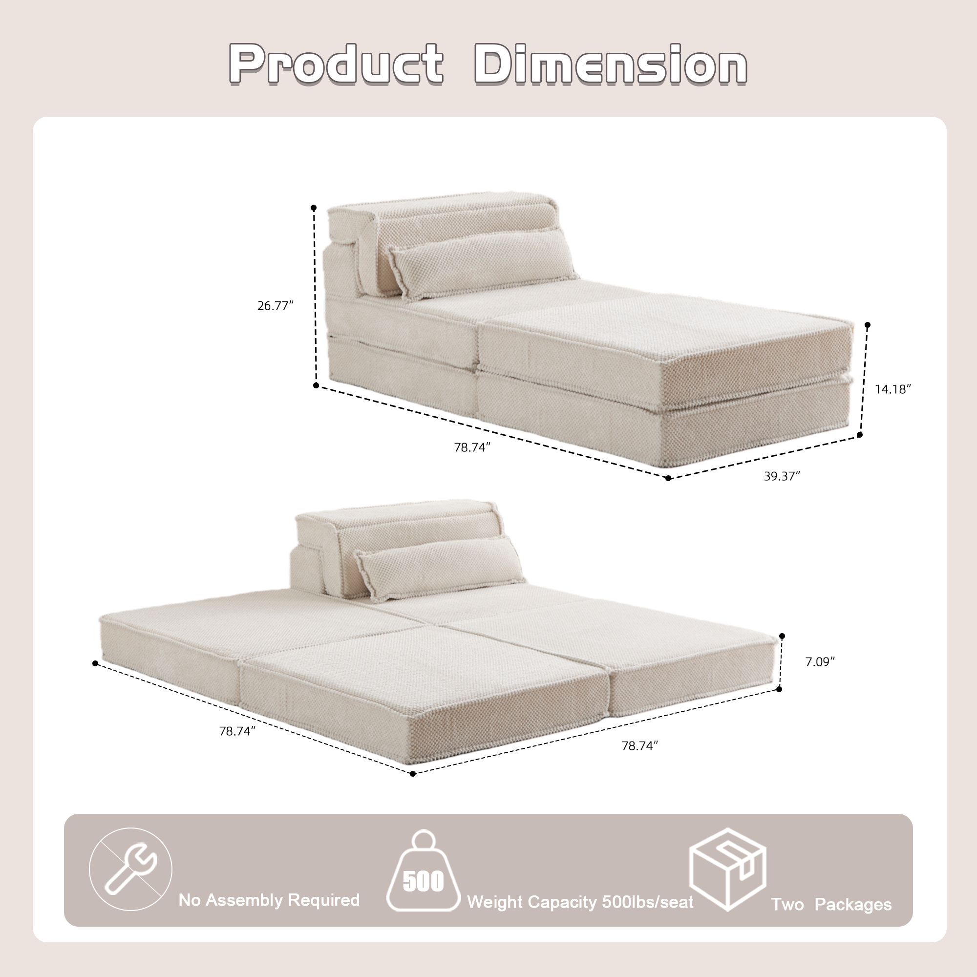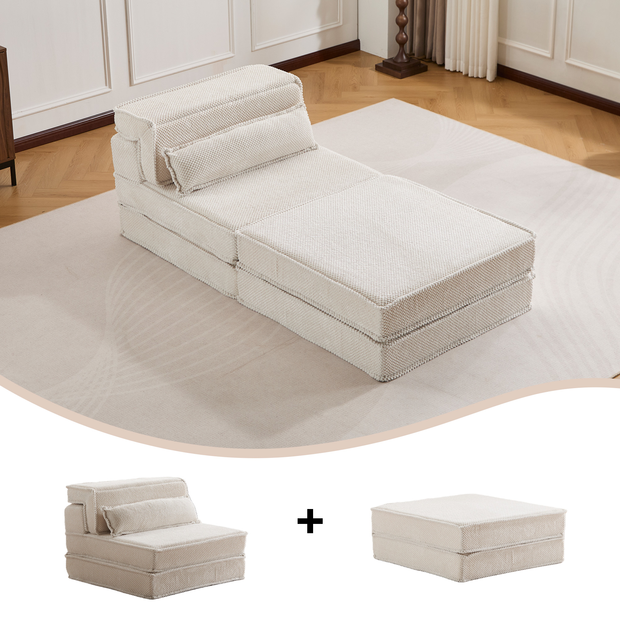 Product Name:Compression Mahjong Sofa,Convertible Floor Sofa Bed,DIY Boneless Modular Sectional Sofa,No Assembly Required,Circle fleece fabric,Oversized Single Seater with 1 Pillow and 1 Ottoman,White