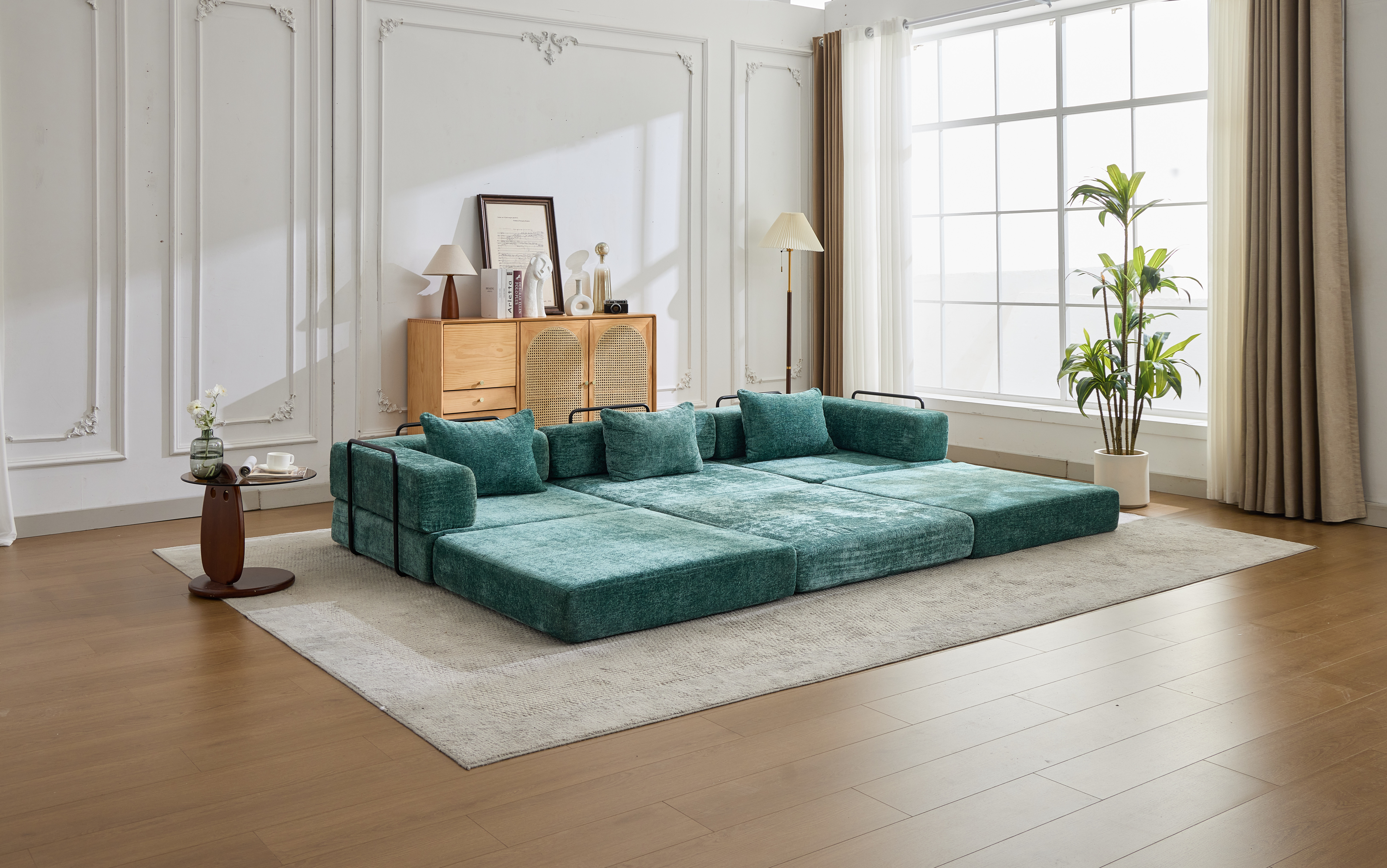 Product Name:Compression Sofa,Convertible Floor Sofa Bed with Fixed-Shape Frame, Boneless Modular Sectional Sofa,No Assembly Required,Chenille fabric,for Living Room Bedroom,Dark Green