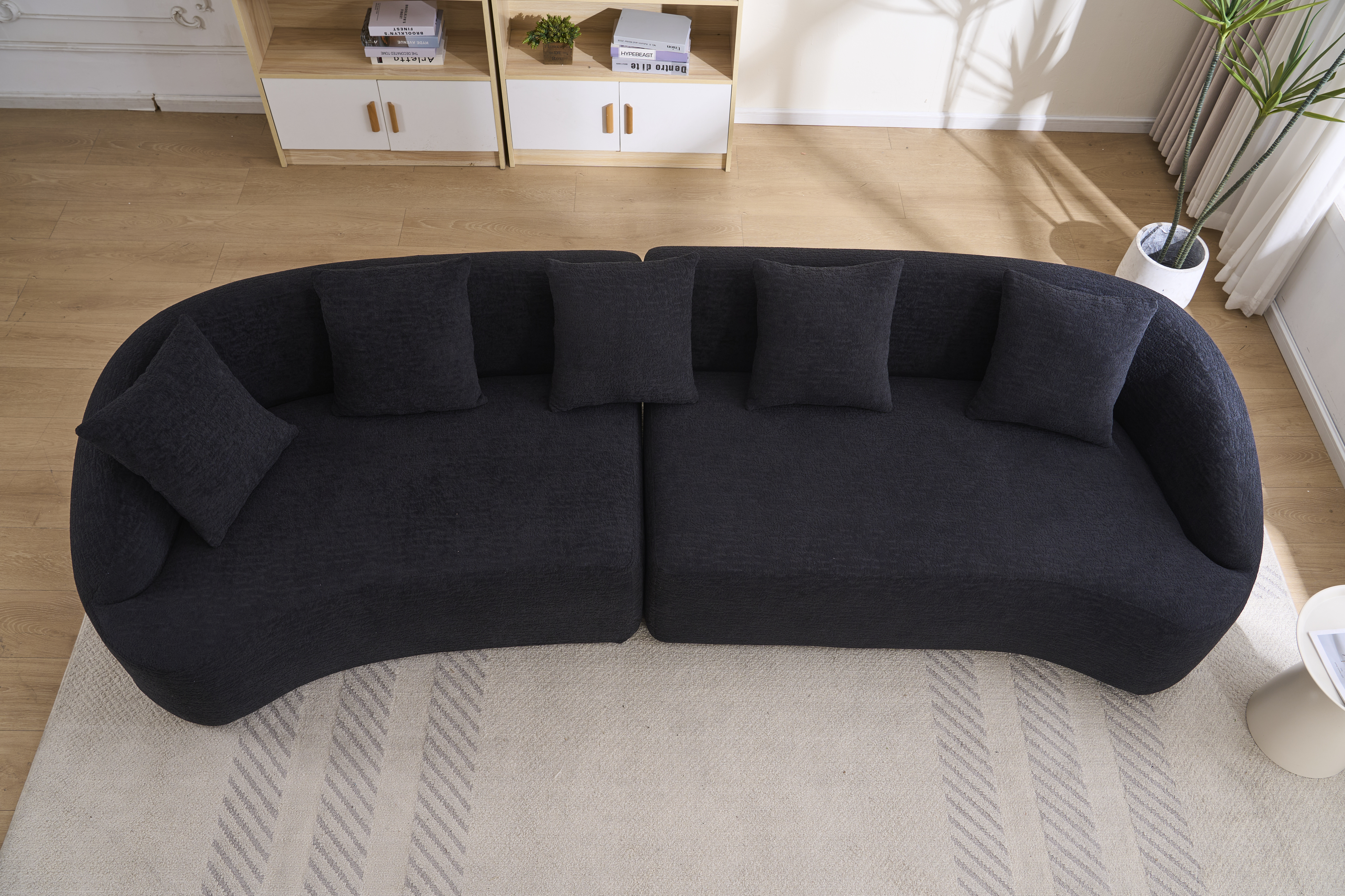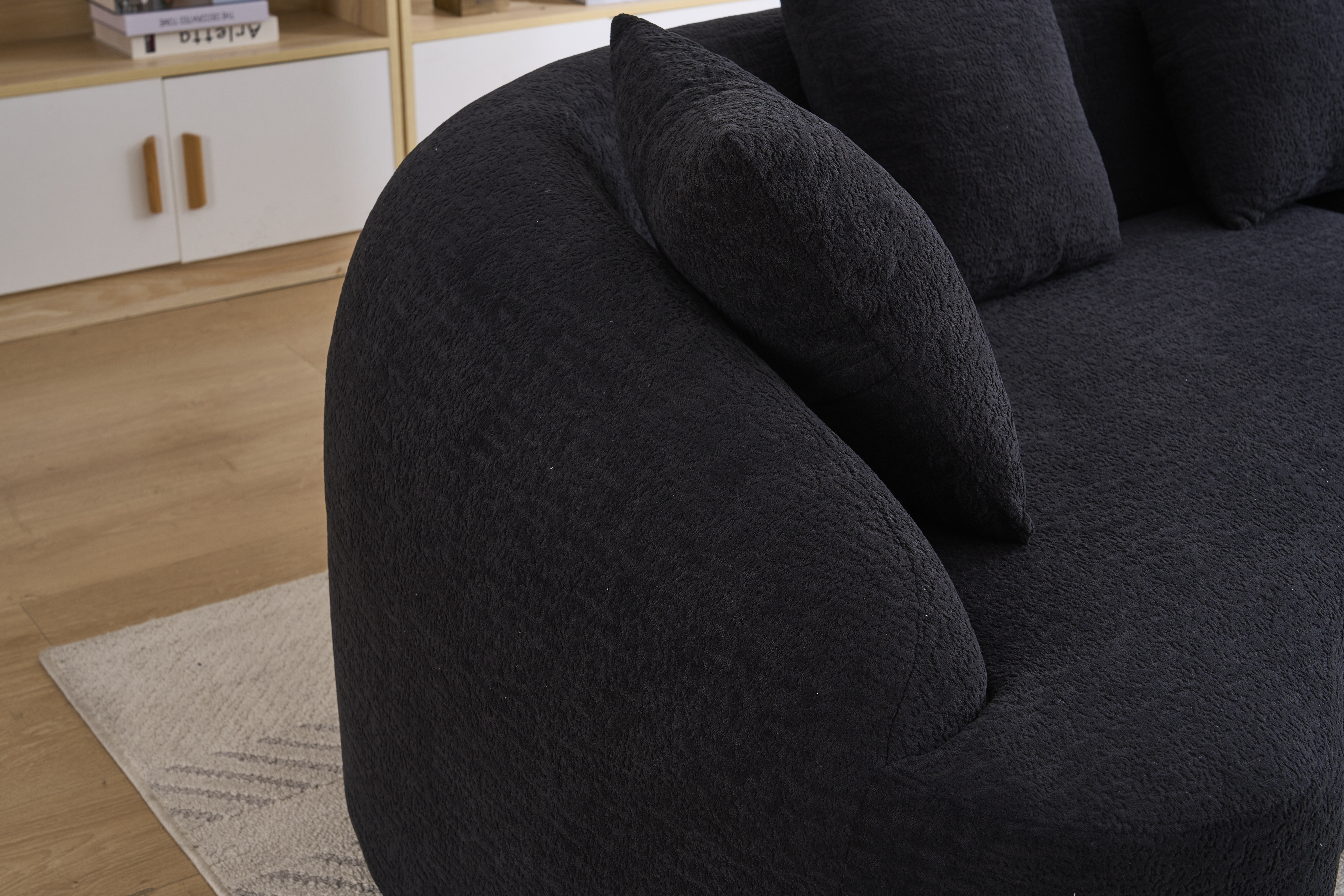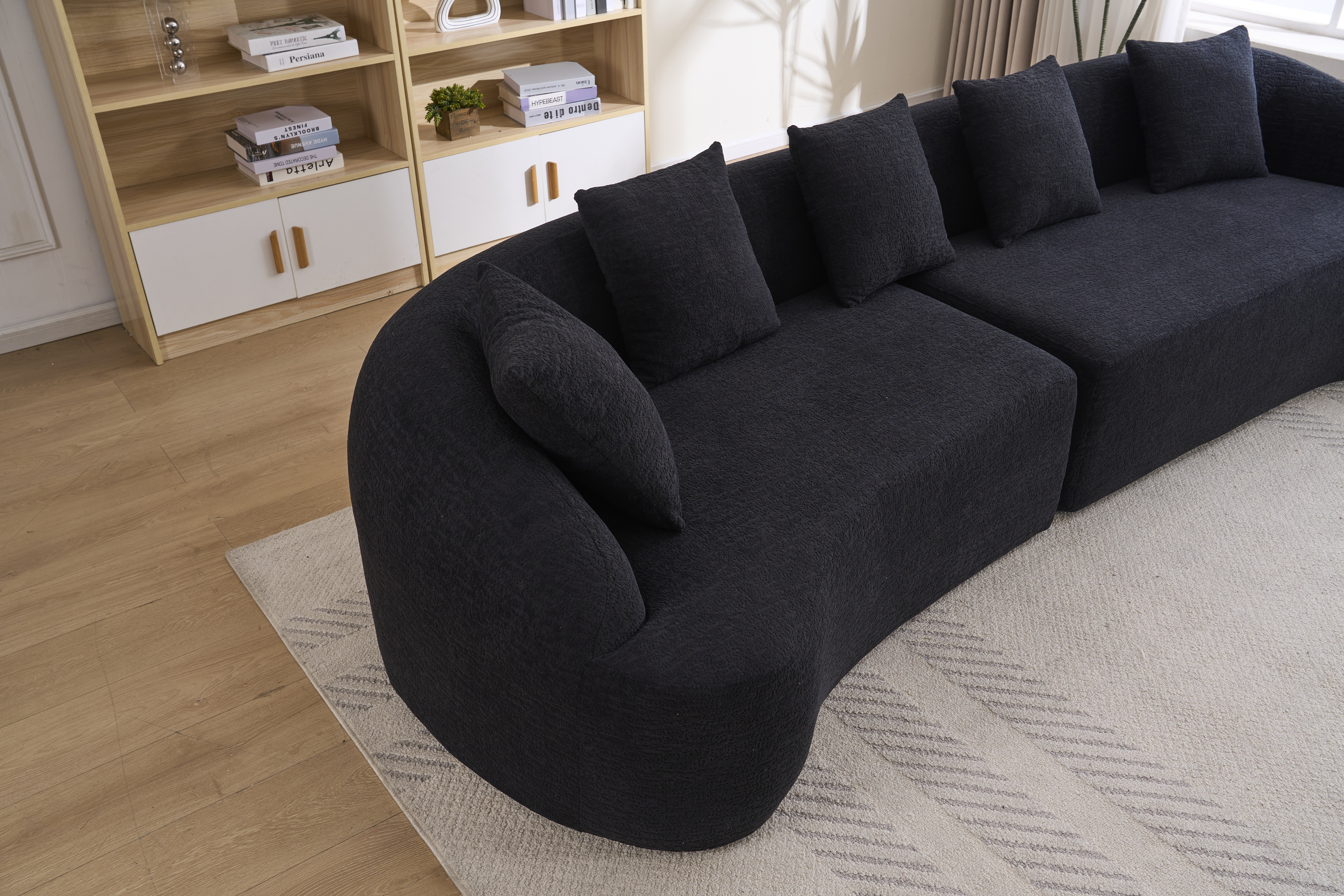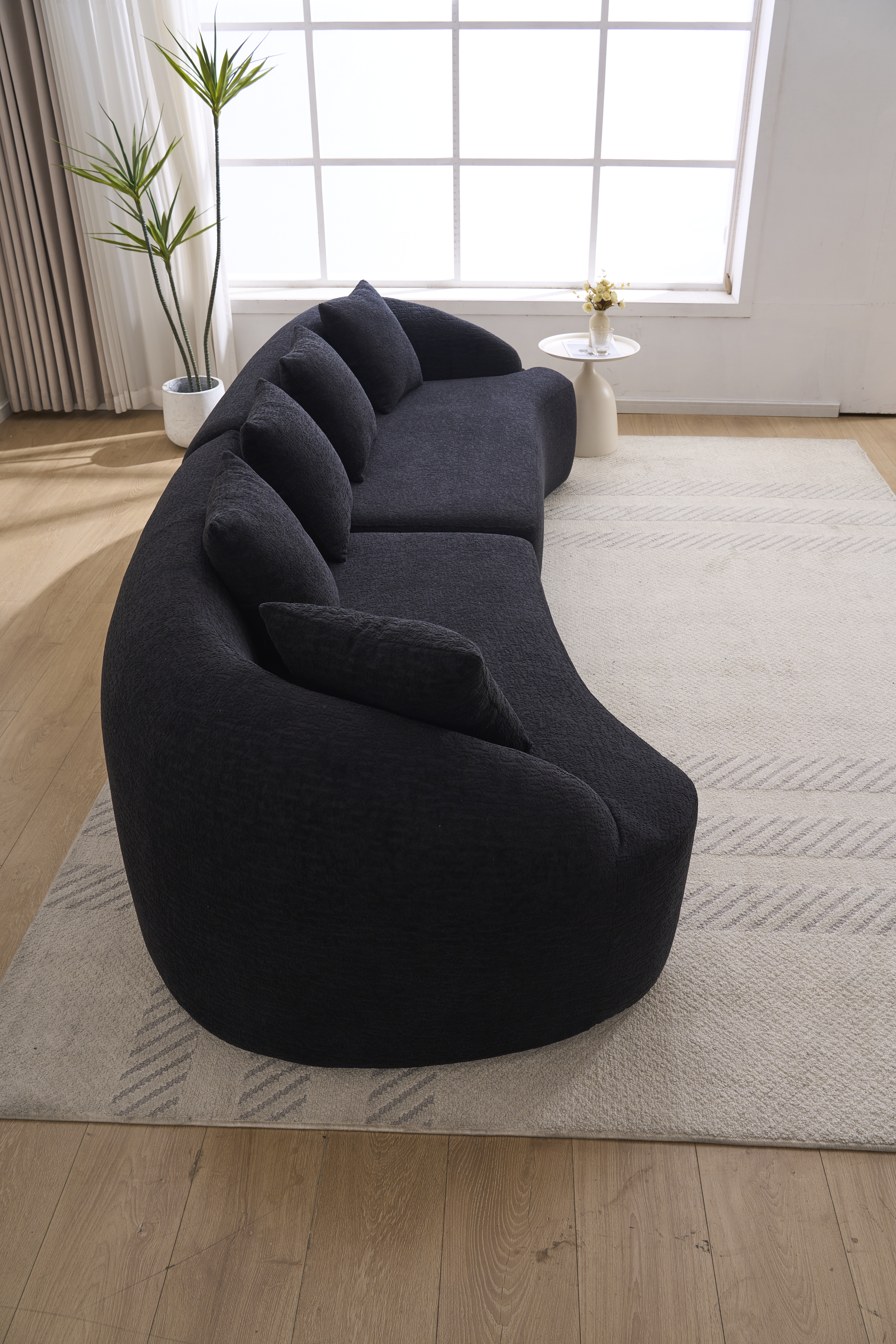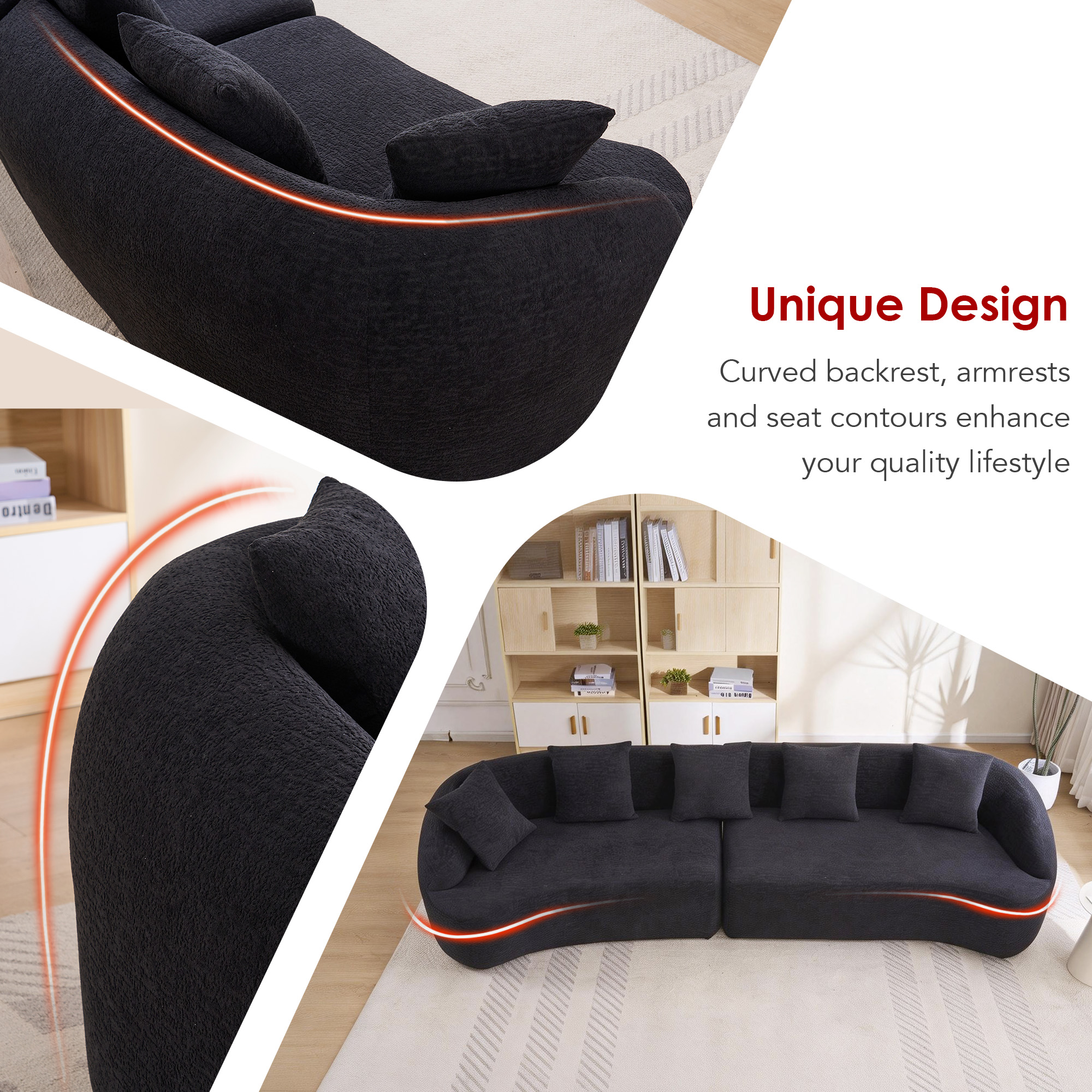 Product Name:Compression Sponge Sofa Black Curved Modular Sectional, 30D High-Density Chenille Sleeper Couch for Apartment,Living room 110"L