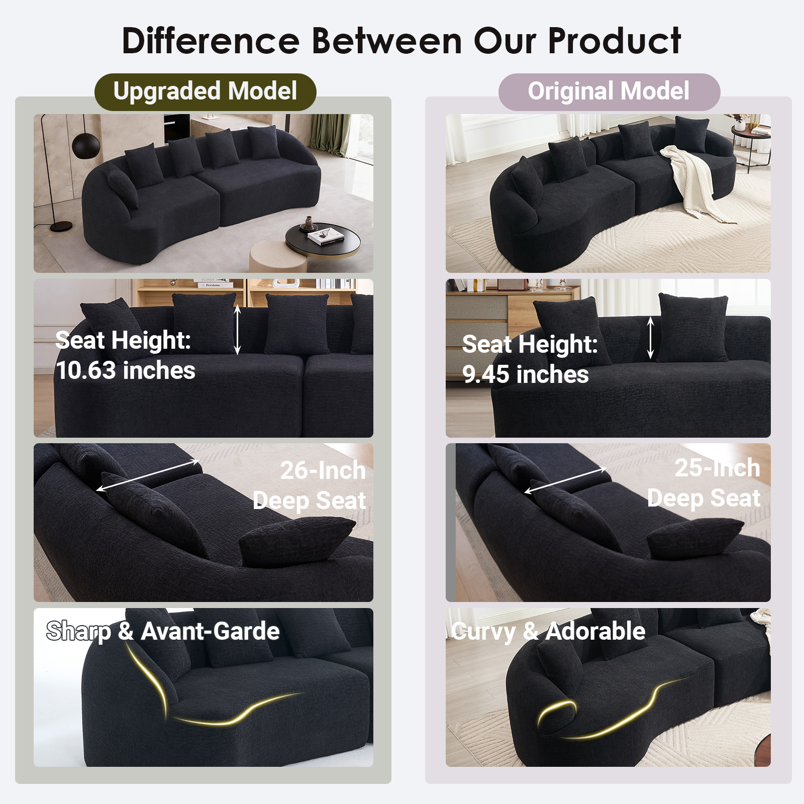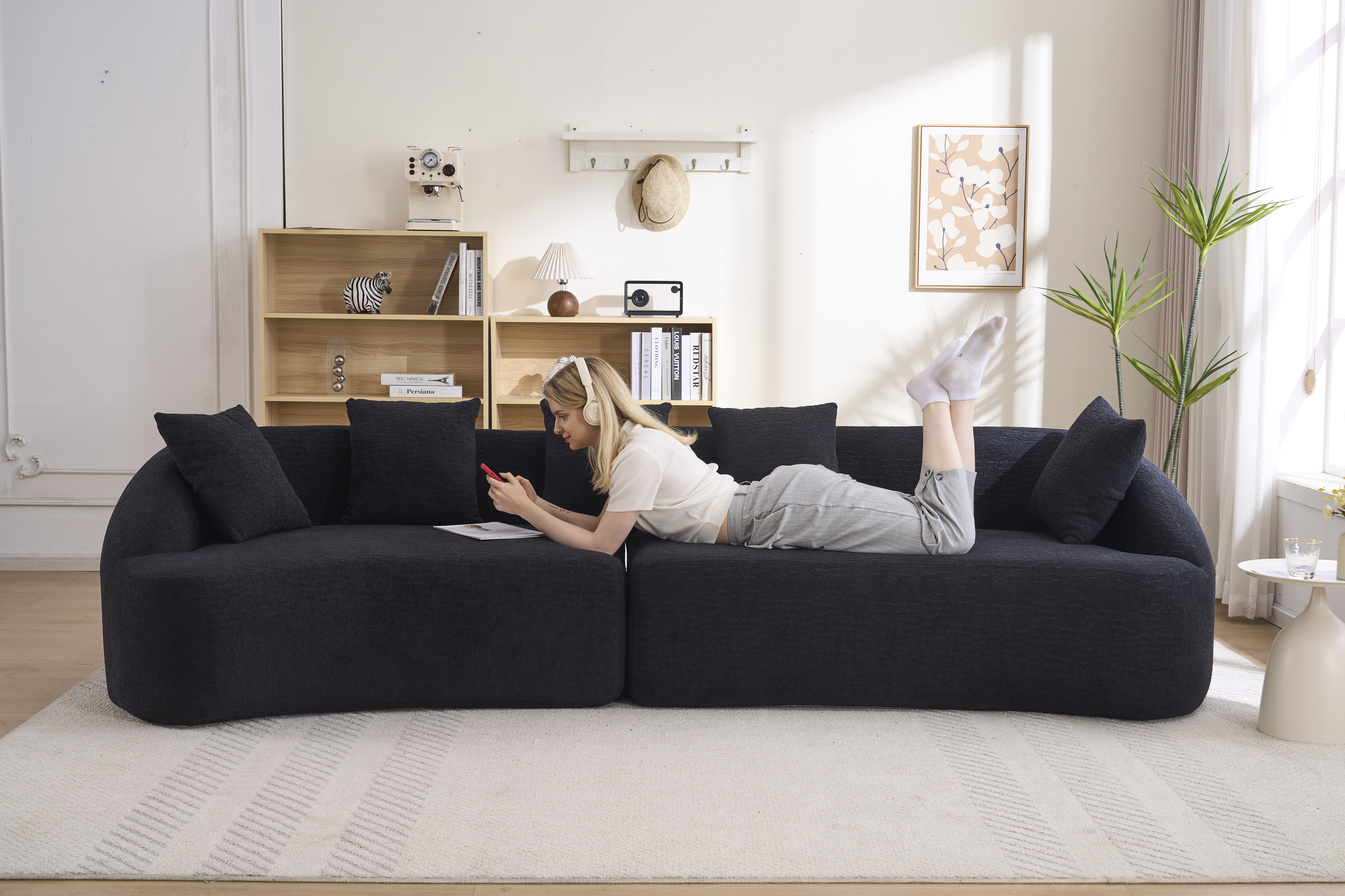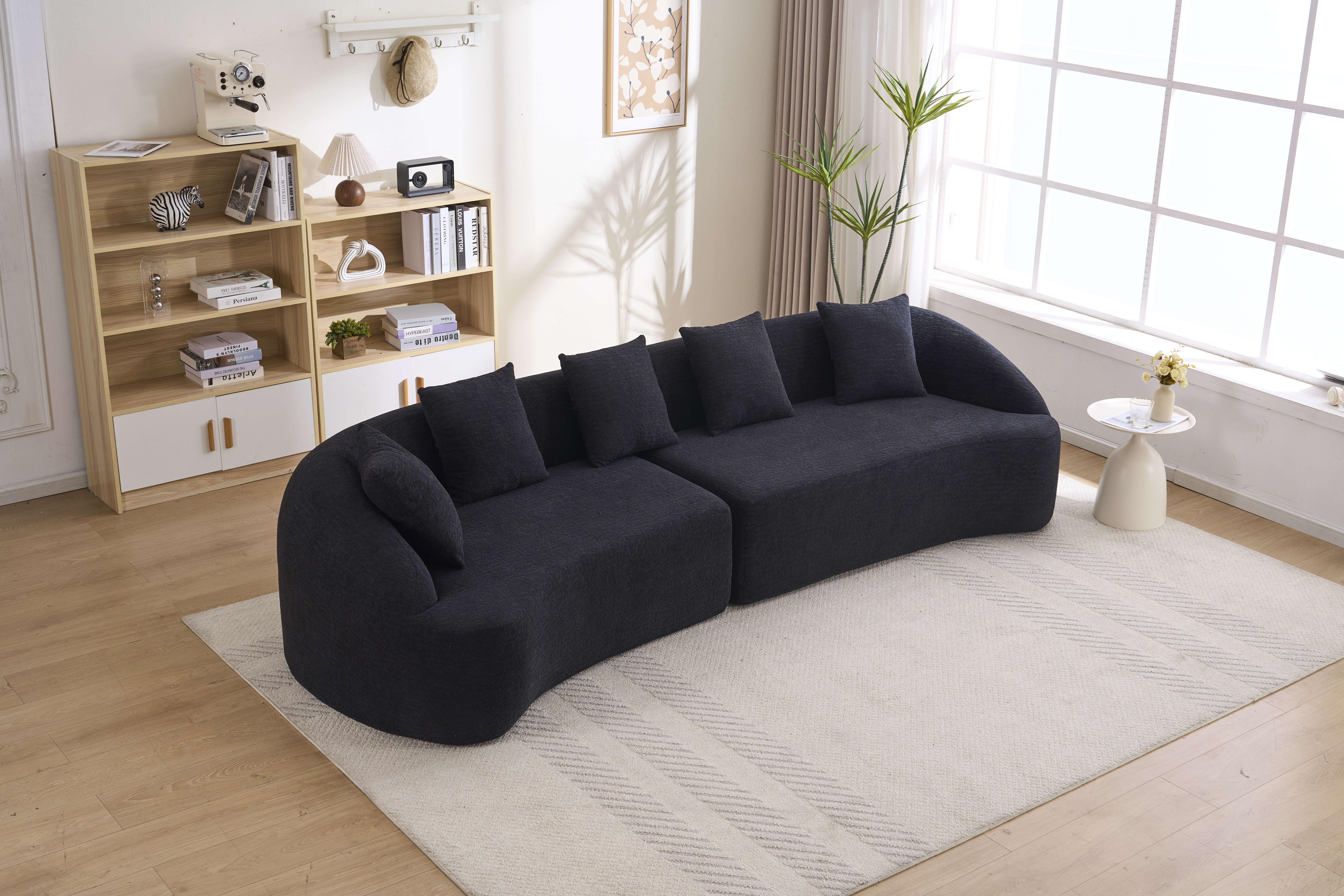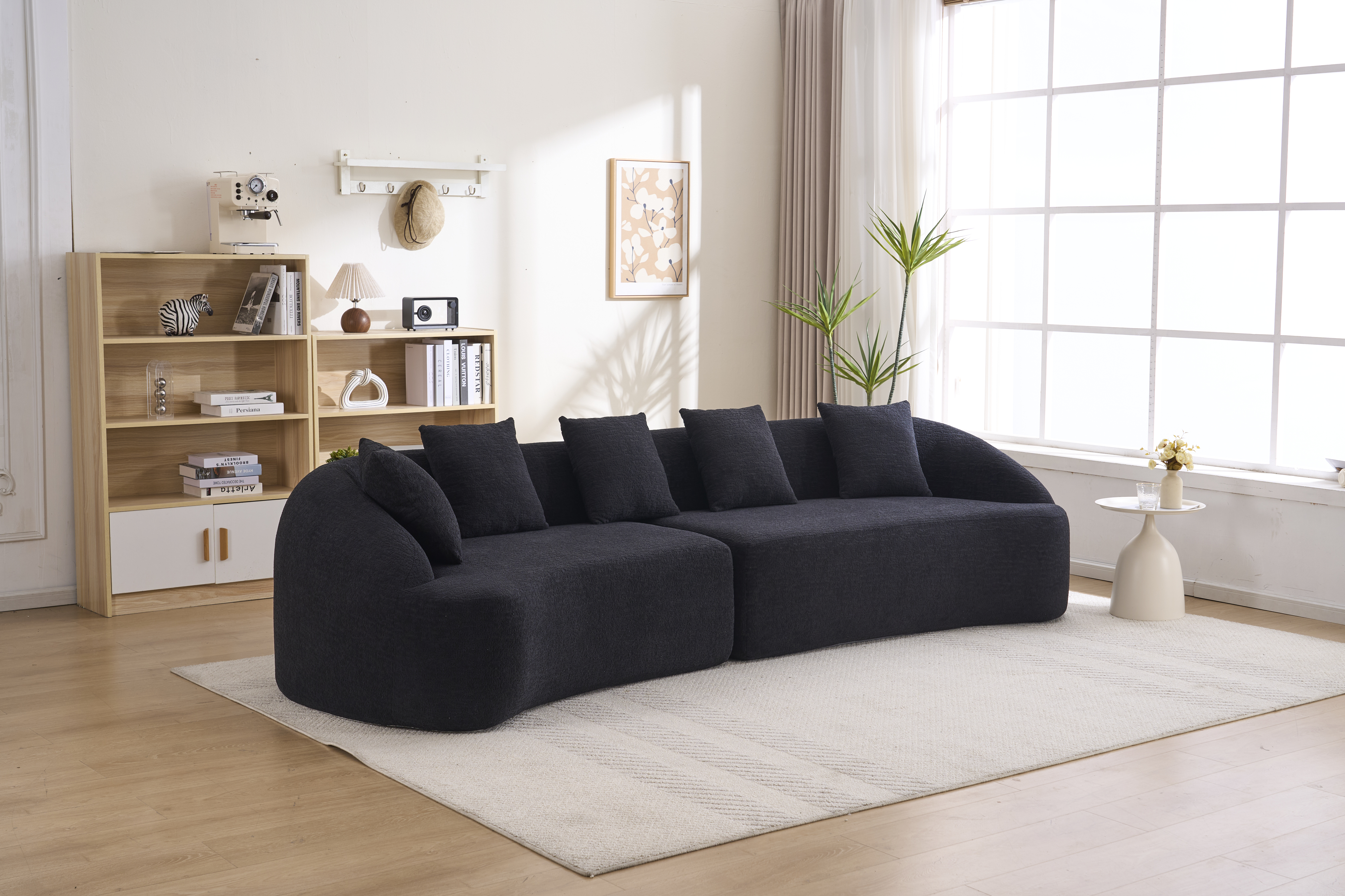 Product Name:Compression Sponge Sofa Black Curved Modular Sectional, 30D High-Density Chenille Sleeper Couch for Apartment,Living room 110"L