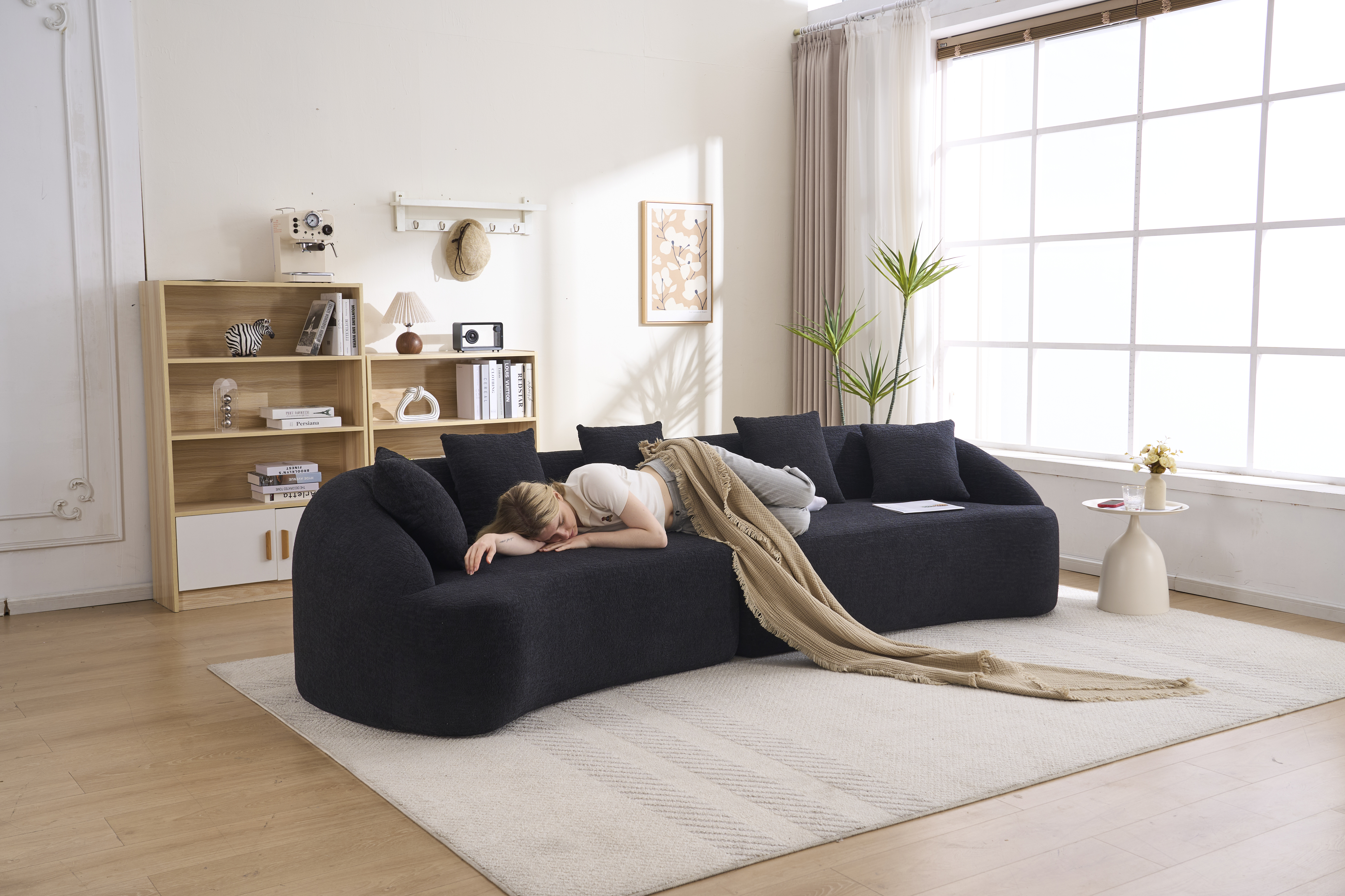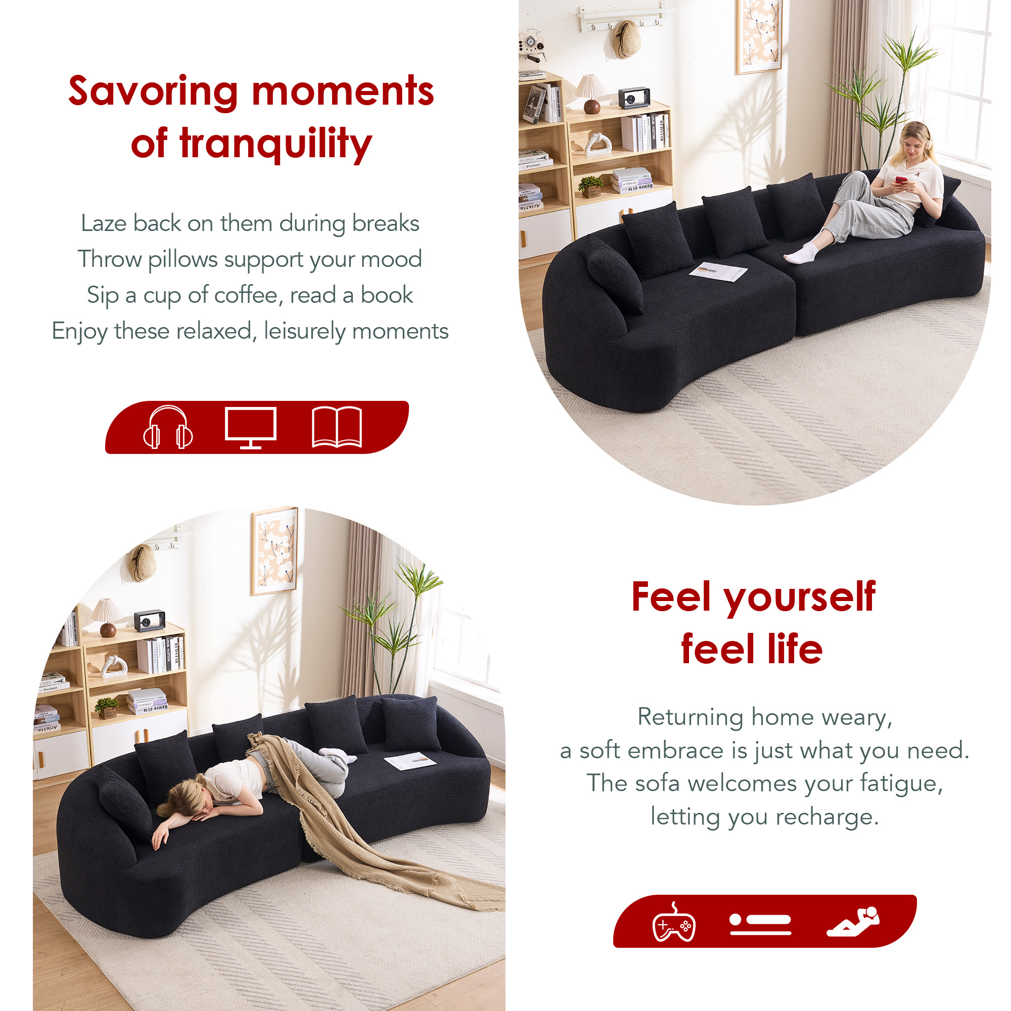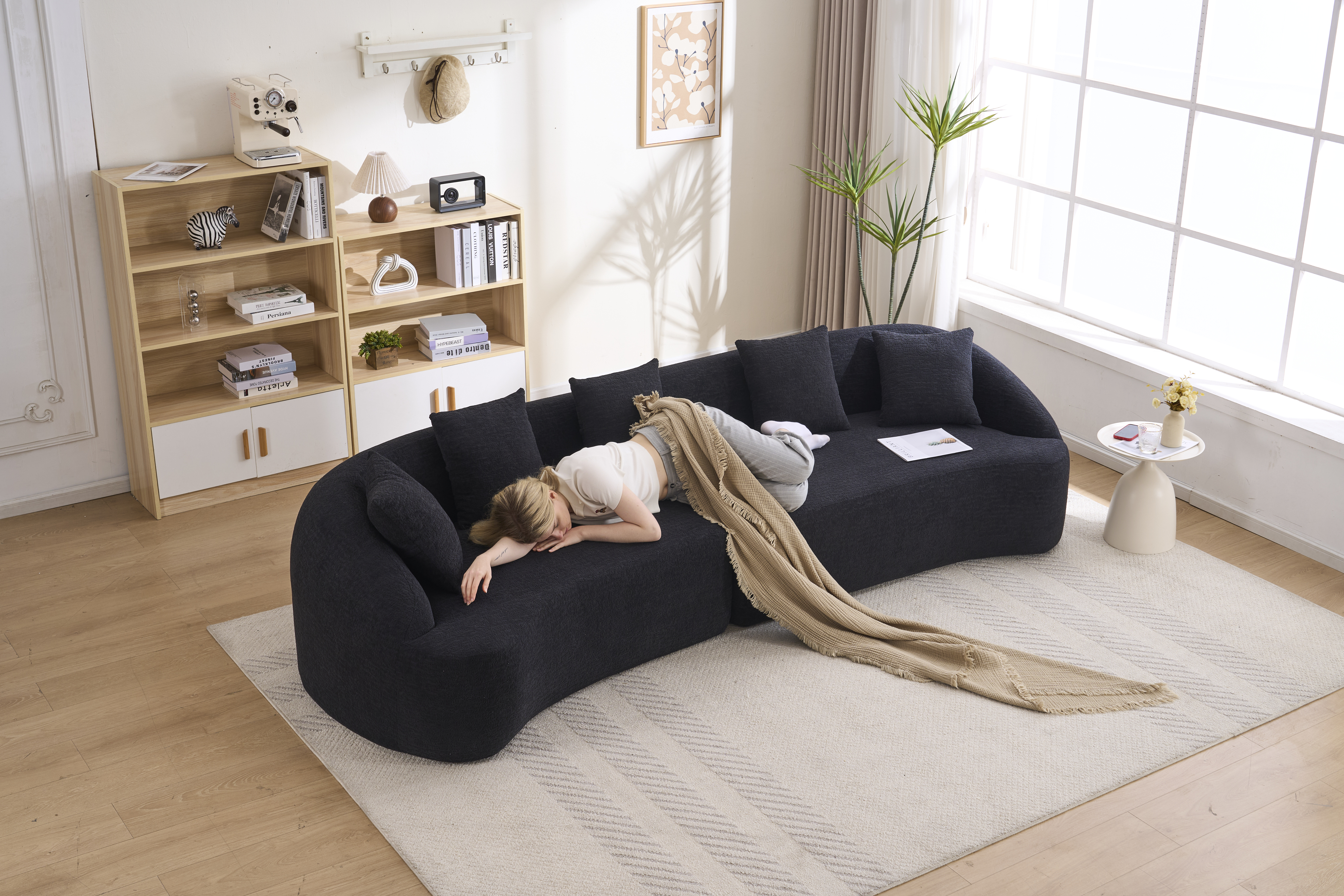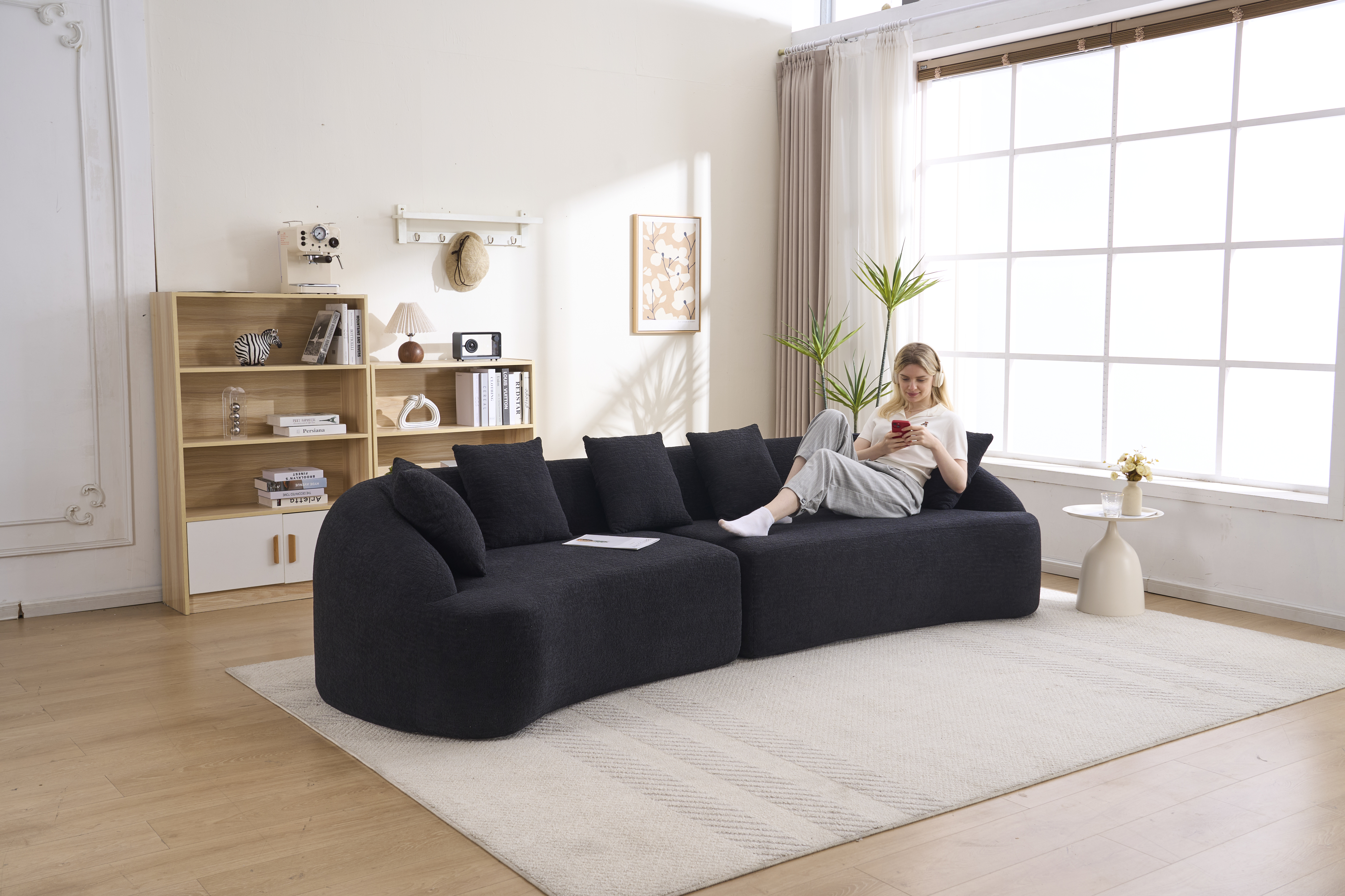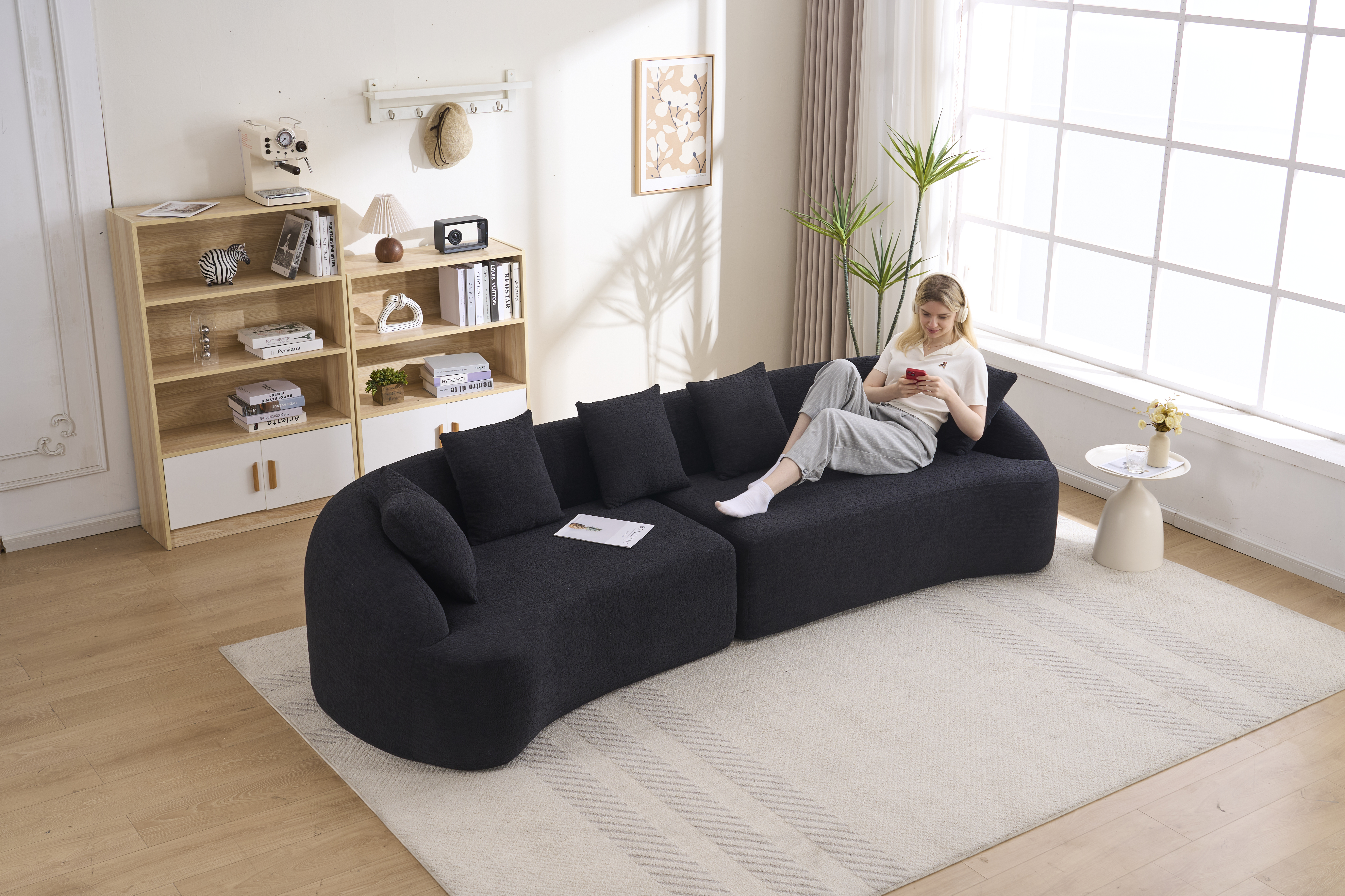 Product Name:Compression Sponge Sofa Black Curved Modular Sectional, 30D High-Density Chenille Sleeper Couch for Apartment,Living room 110"L