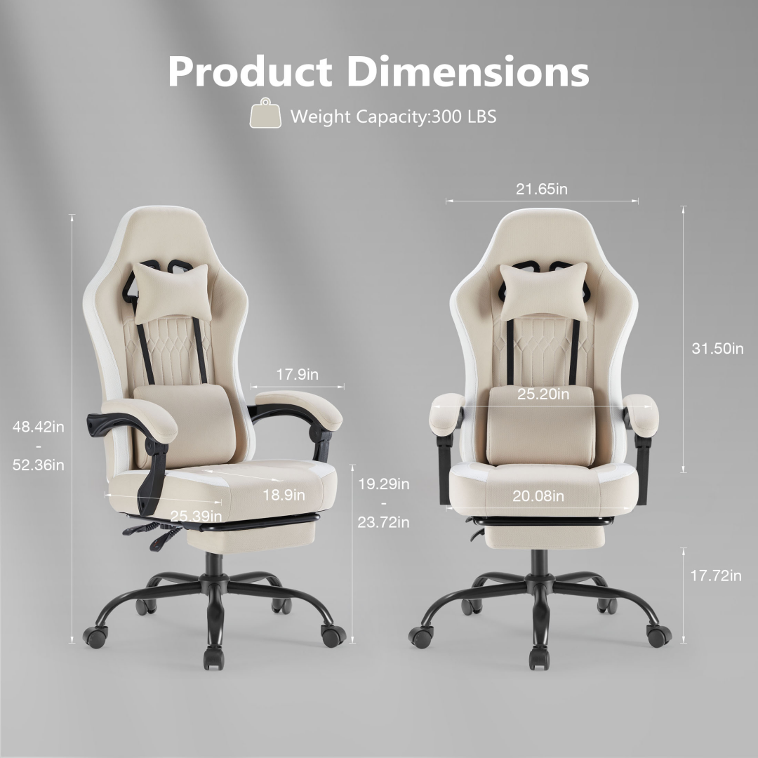Individually Pocket Spring - The seat cushion of game chair features pocket springs, a technique commonly used in sofas. Each spring operates independently, conforming to pressure and body weight to deliver resilient support and a luxurious comfort experience comparable to high-end gaming chairs.