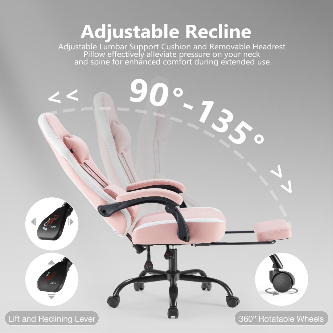 Adapts to Daily Needs - With the removable headrest and waist pillow, the waist pillow can also change the support position by sliding to adapt to your sitting position, which is ideal for playing time and working time. The back is adjusted from 90° in a focused position to 135° in a relaxed position, its height can be raised and lowered 4 inch, and the rugged 3-stage gas lift and upgraded mechanism ensure angle-fixed stability and support, providing reliable support at every angle.