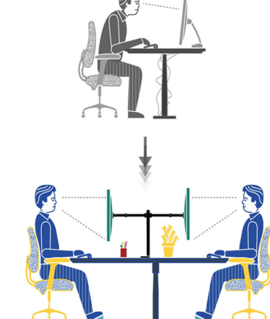 D: [New base with straight rod sliding] The dual-screen design saves space