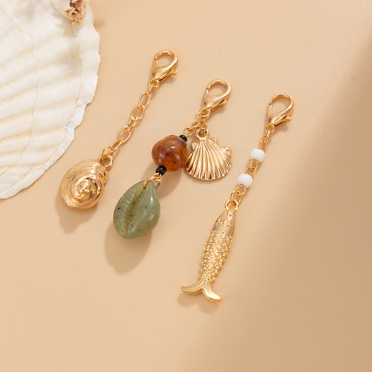 Conch Shell Creative Beaded Fishtail Pendant Keychain