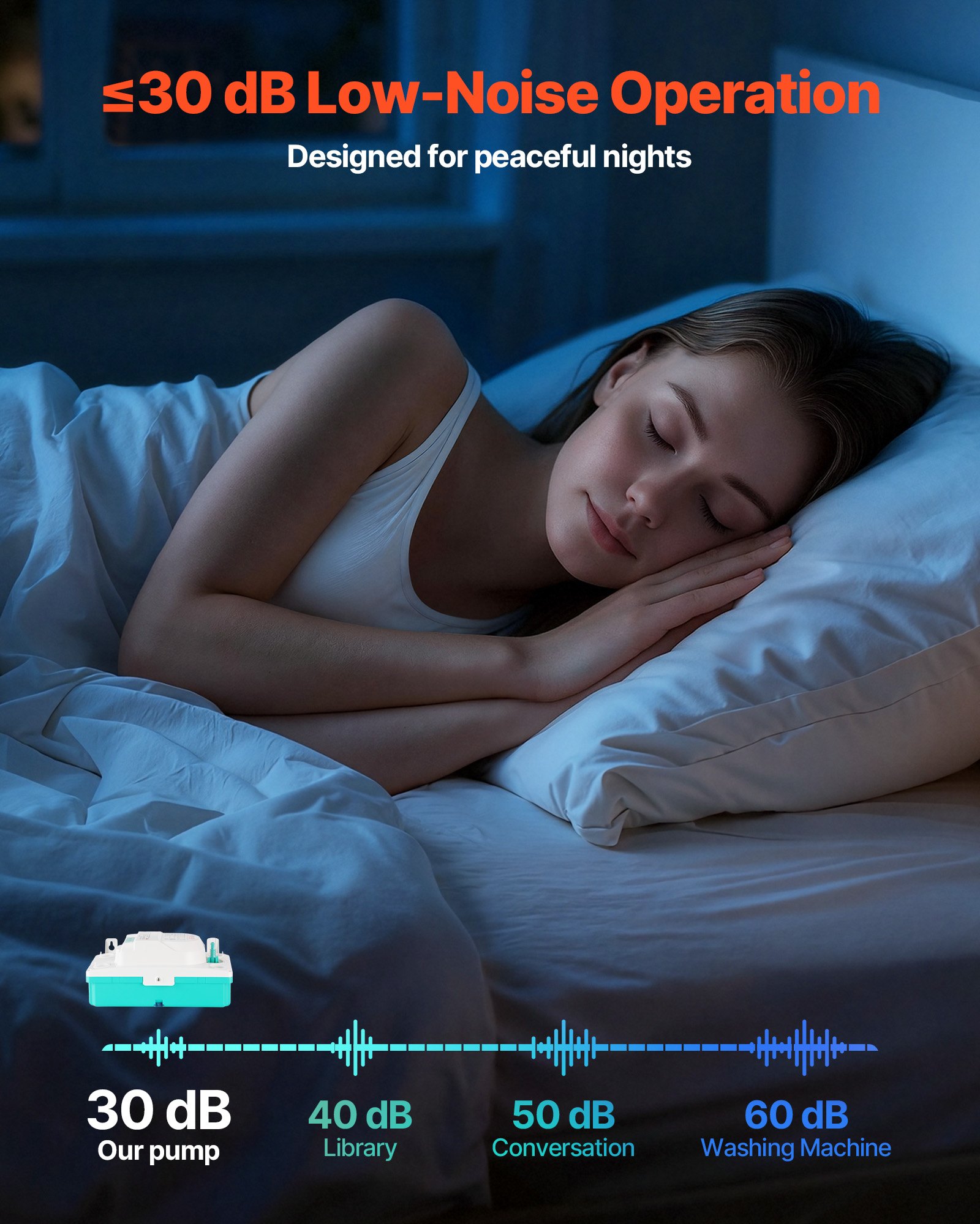 ≤30 dB Quiet Operation: With noise levels at ≤30 dB (measured at 1 m), this automatic condensate pump minimizes clicking and vibration noise. It delivers quiet drainage for bedrooms, living rooms, and basements without disturbing sleep or daily life