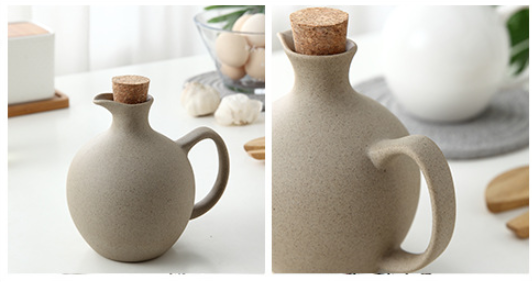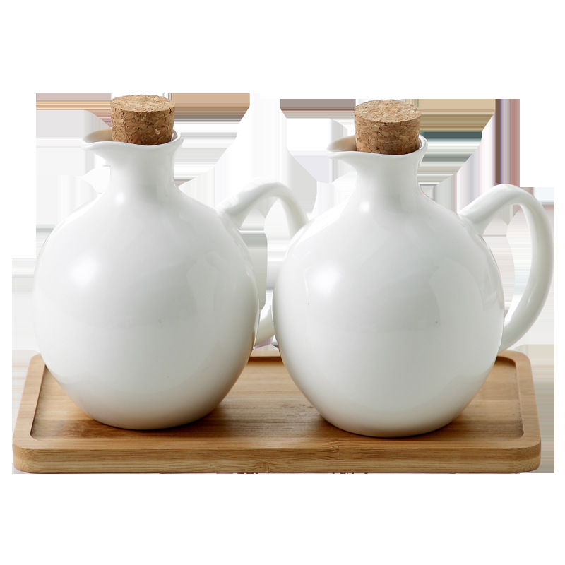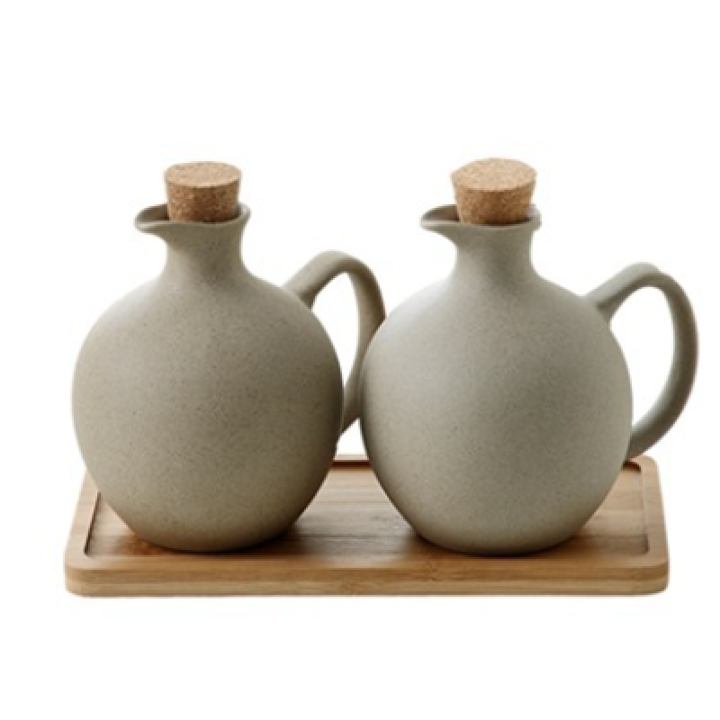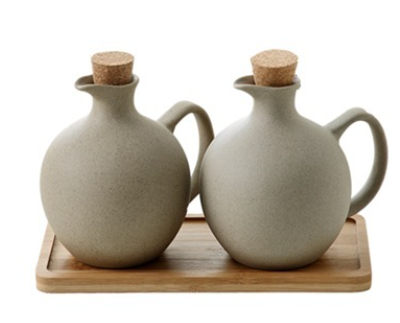 2pcs: two piece earthenware set (two oil bottles + tray)
