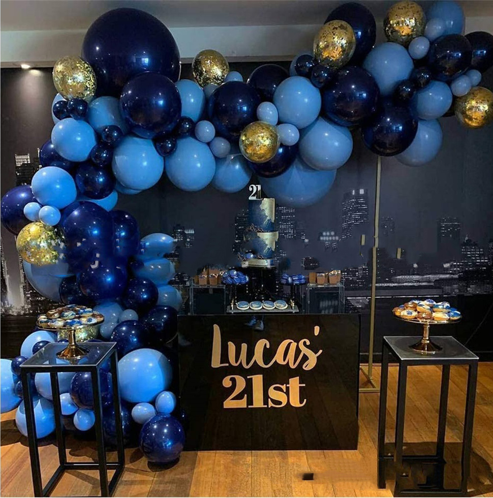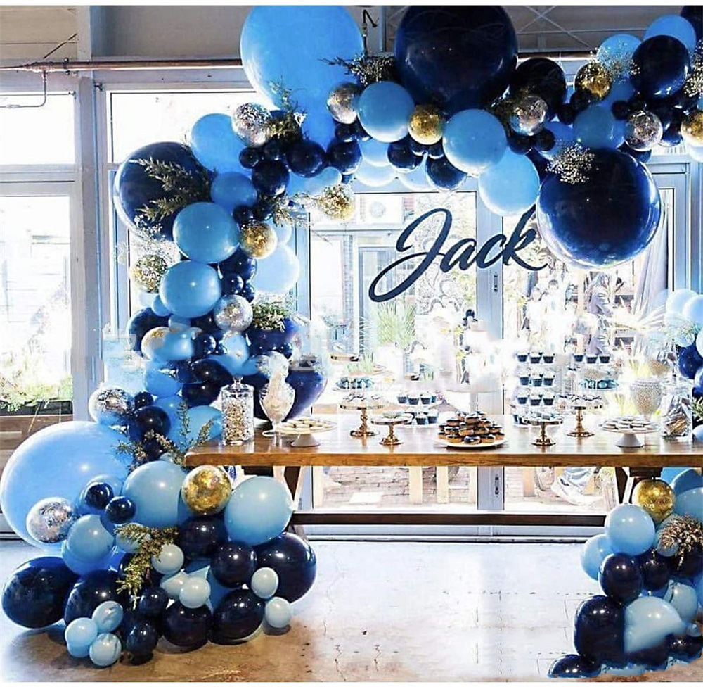 A set Balloon set combination: 2 18-inch matte dark blue + 2 18-inch navy balloons + 20 5-inch matte dark blue + 15 5-inch navy blue + 10 gold sequined balloons 10 + 10 inch silver sequins 10 balloons + 30 10-inch matte dark blue + 30 10-inch navy blue balloons + 1 balloon chain + 1 glue dot