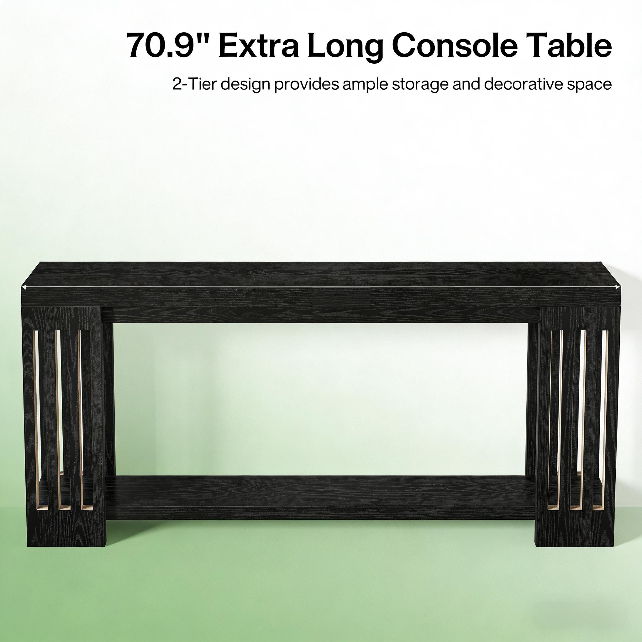 Important Reminder!!! 1) Attention: All products in our store do not support Canada self pickup ordering. Please do not create shipping labels for Canada. Our American products do not support self pickup to Canada 2)We do not ship to Alaska, Hawaii, US protectorates (e.g., Puerto Rico), P.O. boxes, or APO/FPO addresse 3)We don’t accept non-defective remorse returns Durable Structure - Made of premium E1 MDF, this extra-long console table boasts durability and stability, holding a variety of items without any concerns. Farmhouse Charm - With a classic farmhouse-inspired design, this 2-tier entryway table sports vintage vertical stripe legs, adding warmth and style to any room. Ample Storage - With dimensions of 11.81"D x 70.9"W x 31.49"H, this provides generous space for books, decor, or baskets, while maintaining a sleek design. Versatile Use - Ideal for living rooms, hallways, or entryways, this table offers multifunctional storage and enhances the aesthetics of your home. Easy Assembly - Including all required hardware and detailed instructions makes the assembly process easy and convenient. For any problems, feel free to consult us.