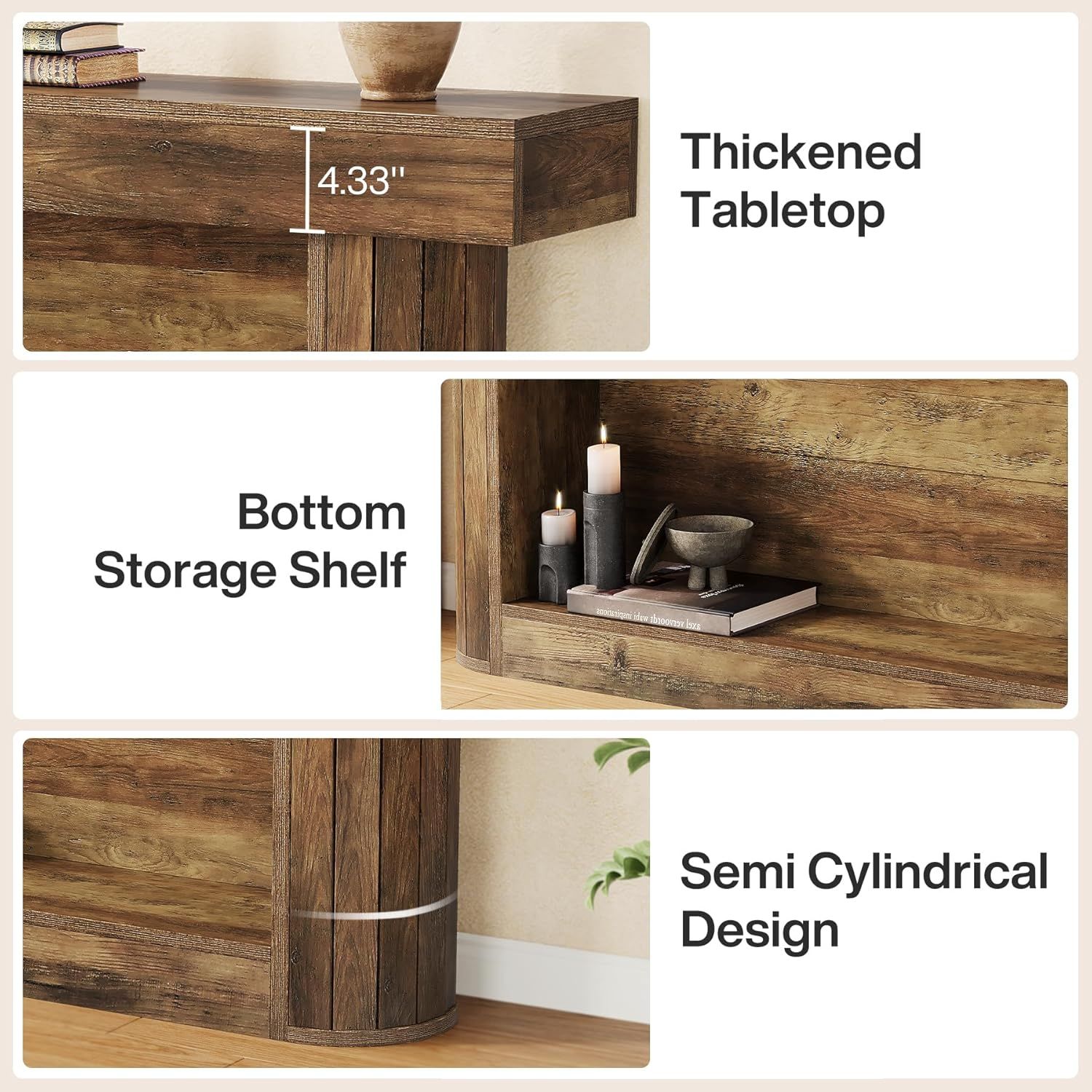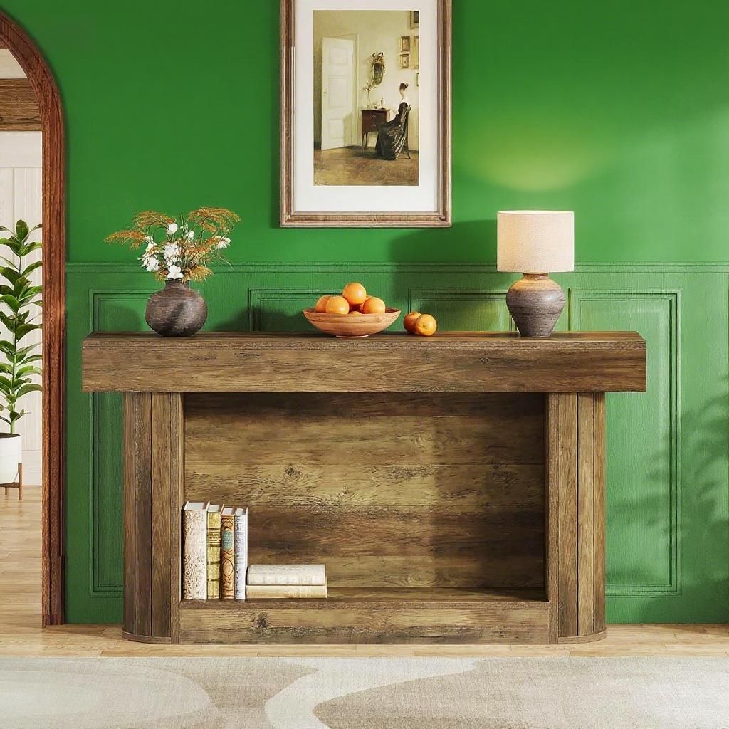 Charming Rustic Style: Boasting a rustic brown finish and a sleek, minimalist silhouette, this small entryway table exudes a cozy farmhouse charm. It can add character and warmth to your entryway, making a great first impression on guests