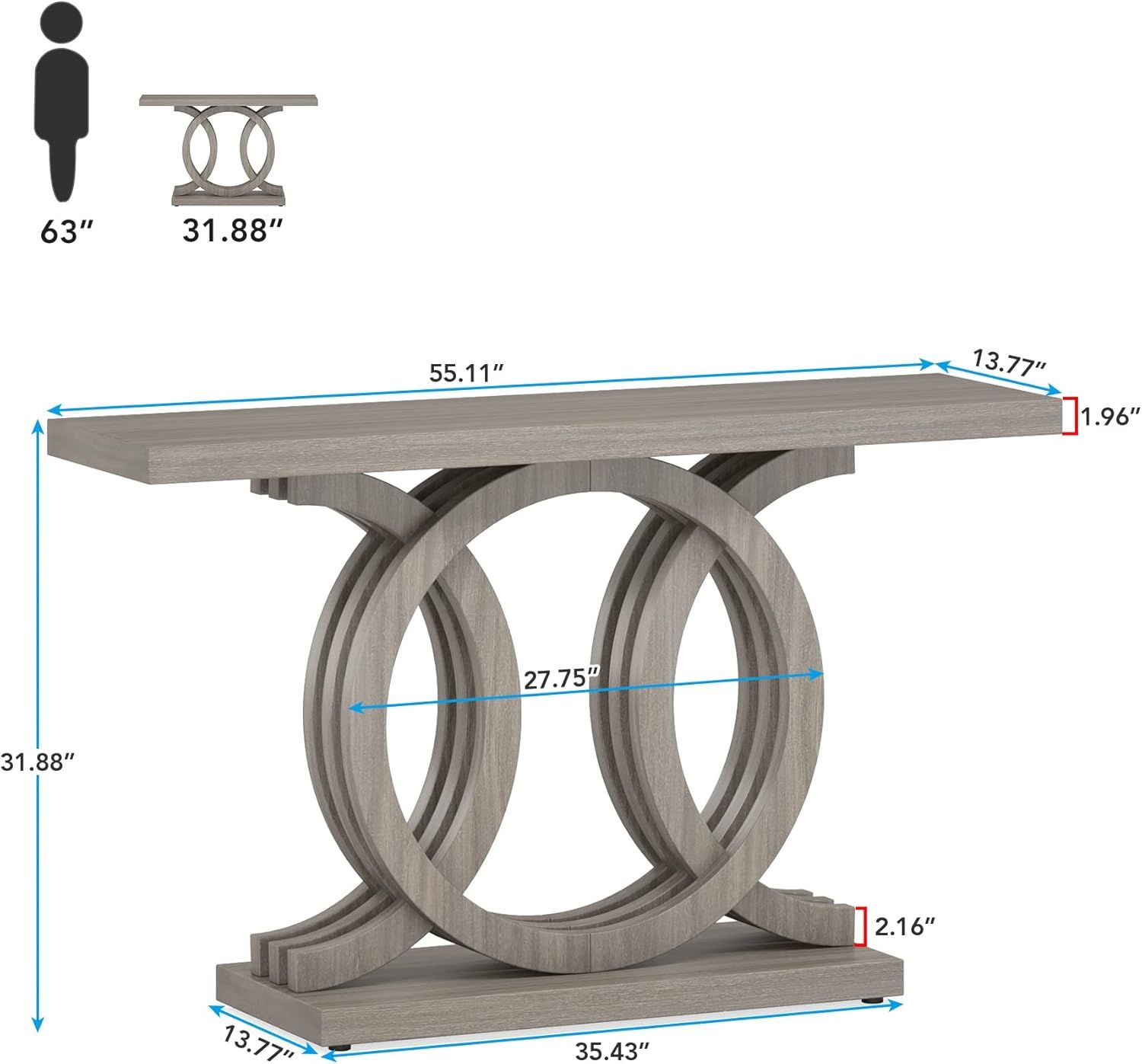 Reinforced Thick Tabletop: The 1.96 inches tabletop is manufactured wood with veneering to makes the surface smooth and texture. It can display your collections or plants better The size of the tabletop is L 55 * W 13.77 inches which is enough for you to place the decorations from sculpture to plants. The veneering it takes can make the tabletop water-proof and easy to clean.