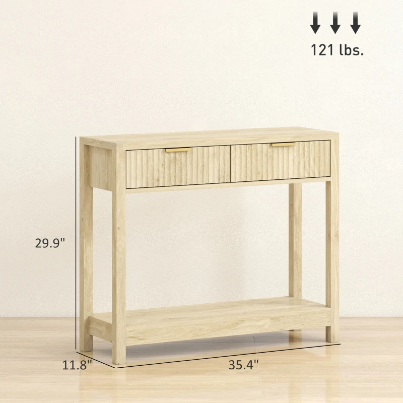 - Organizational Hub: Equipped with two drawers and an open shelf, this narrow console table keeps your hallway or living room neat and clutter-free