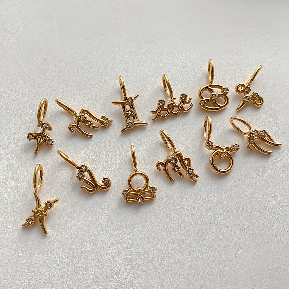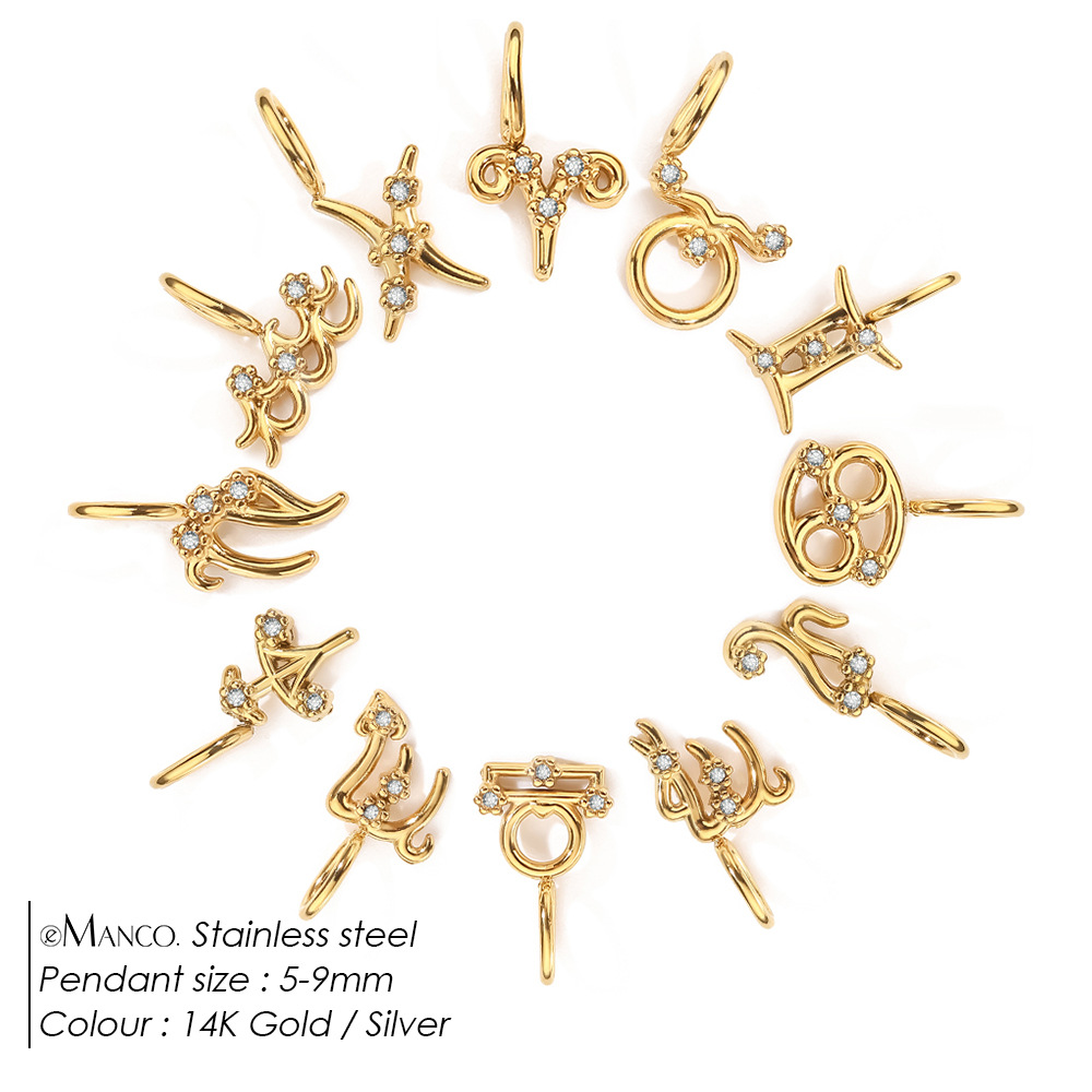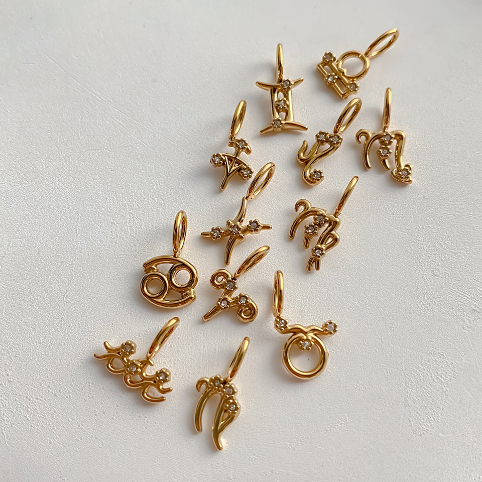 Colors: Aries—14K Gold, Aries—Steel Color; Taurus—14K Gold, Taurus—Steel Color; Gemini—14K Gold, Gemini—Steel Color; Cancer—14K Gold, Cancer—Steel Color; Leo—14K Gold, Leo—Steel Color; Virgo—14K Gold, Virgo—Steel Color; Libra—14K Gold, Libra—Steel Color; Scorpio—14K Gold, Scorpio—Steel Color; Sagittarius—14K Gold, Sagittarius—Steel Color; Capricorn—14K Gold, Capricorn—Steel Color; Aquarius—14K Gold, Aquarius—Steel Color; Pisces—14K Gold, Pisces—Steel Color