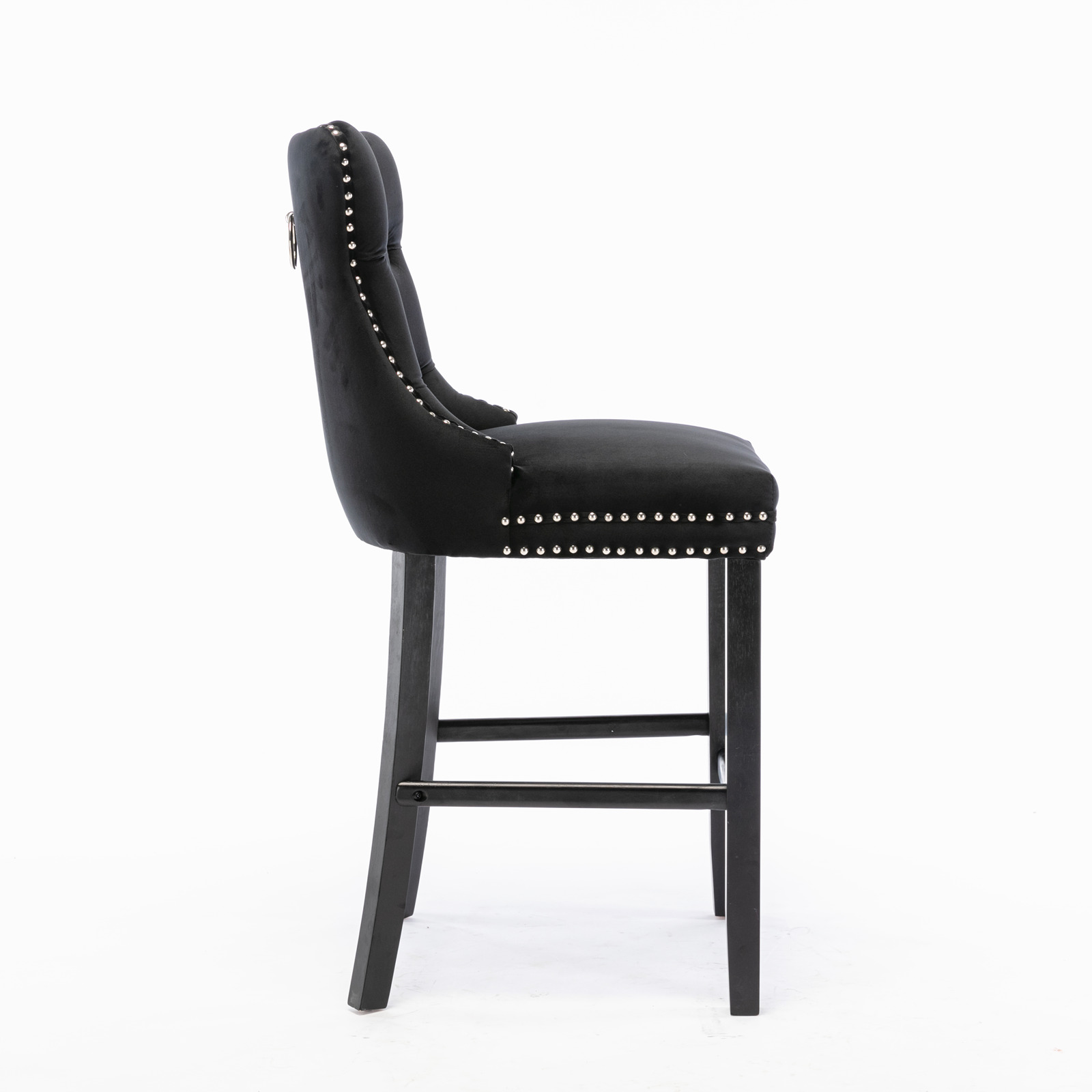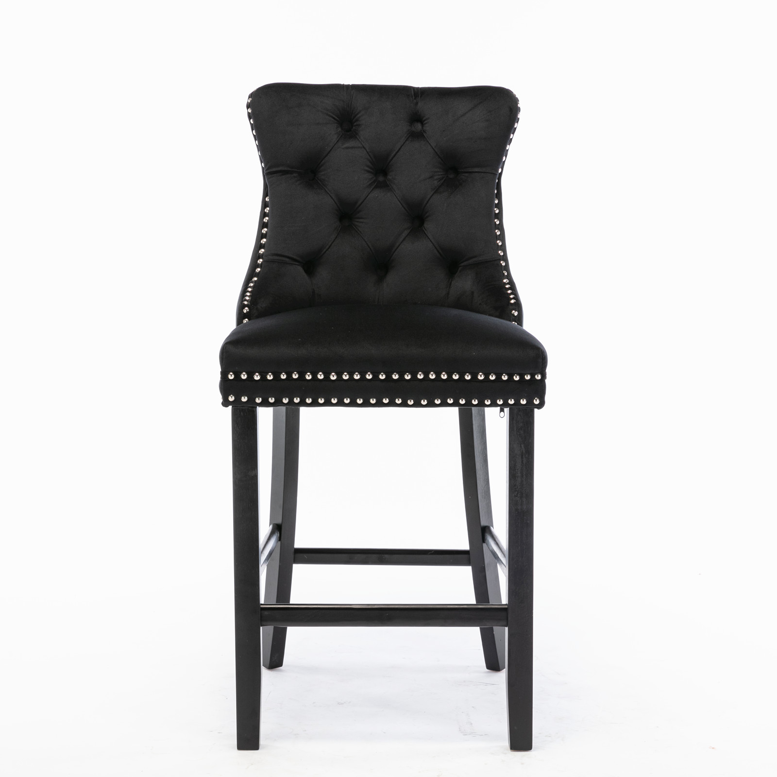 Product Name:Contemporary Velvet Upholstered Barstools with Button Tufted Decoration and Wooden Legs, and Chrome Nailhead Trim, Leisure Style Bar Chairs,Bar stools, Set of 2 (Black),SW2002BK