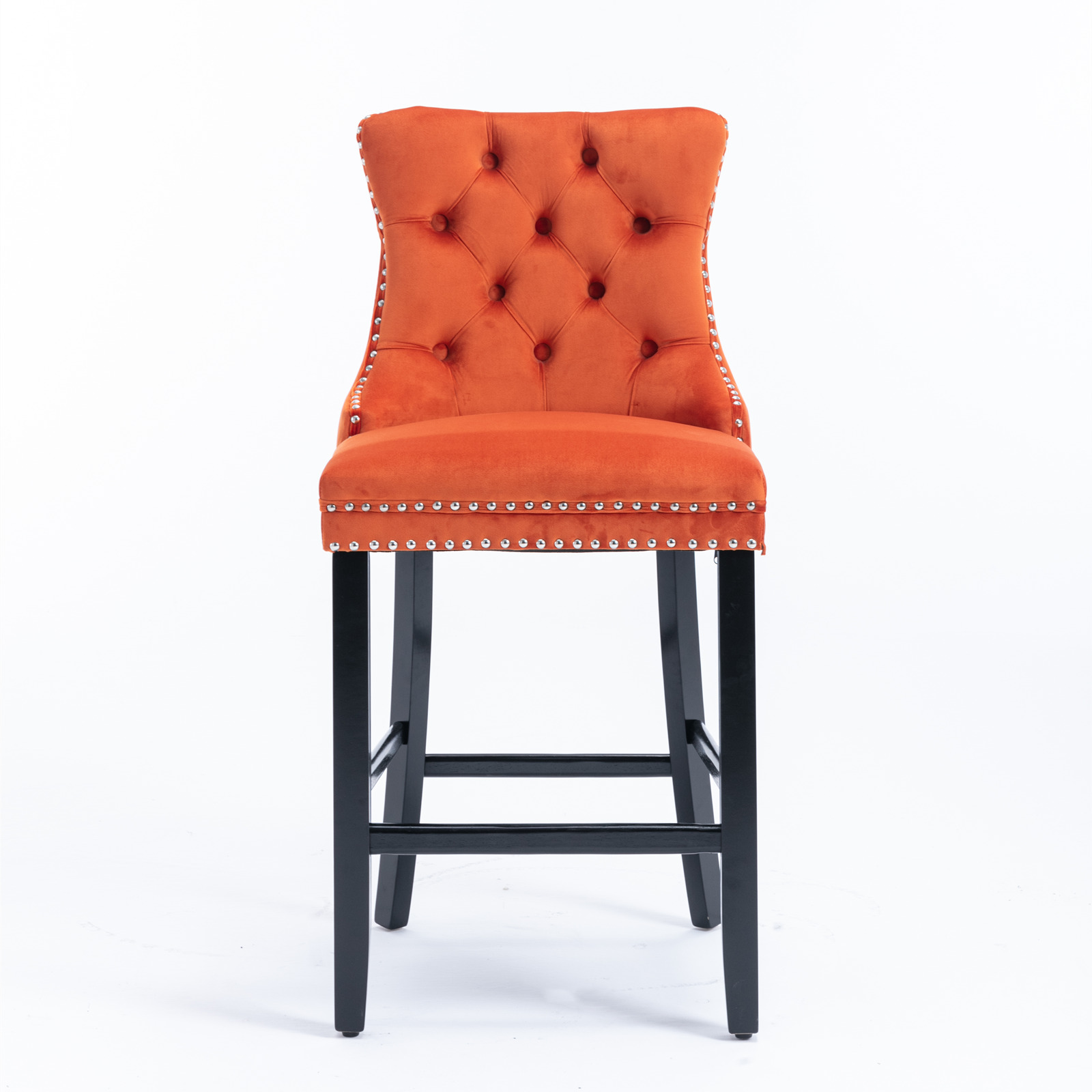 Product Name:Contemporary Velvet Upholstered Barstools with Button Tufted Decoration and Wooden Legs, and Chrome Nailhead Trim, Leisure Style Bar Chairs,Bar stools, Set of 2 (Orange),SW2002OG