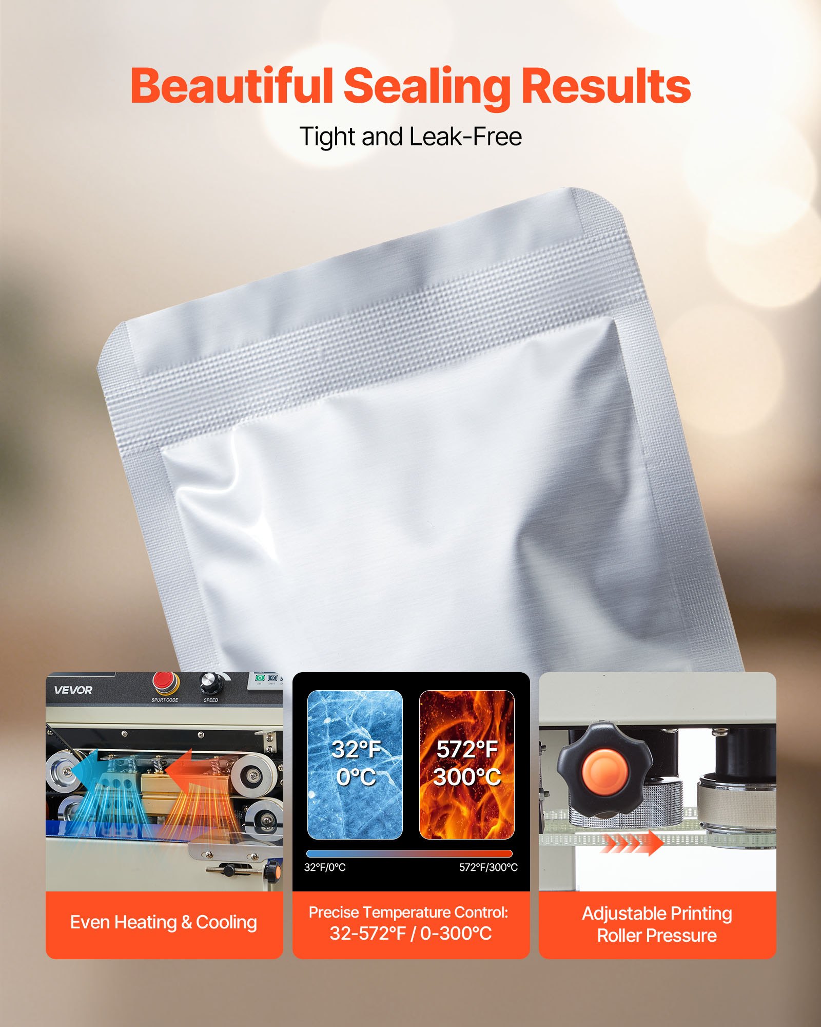 Fast Sealing: The continuous sealing machine packs power with its 600W motor, reaching speeds up to 52.5 ft/min. It delivers stable performance and makes packaging faster for different production needs