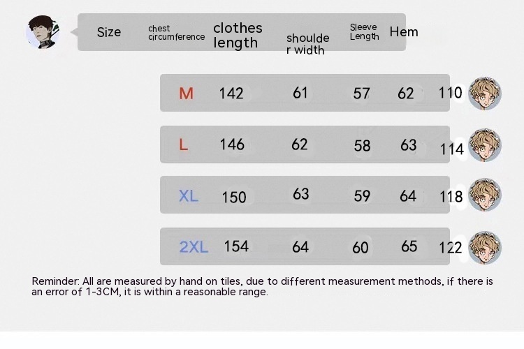 1. Asian sizes are 1 to 2 sizes smaller than European and American people. Choose the larger size if your size between two sizes. Please allow 2-3cm differences due to manual measurement. 2. Please check the size chart carefully before you buy the item, if you don't know how to choose size, please contact our customer service. 3.As you know, the different computers display colors differently, the color of the actual item may vary slightly from the following images.