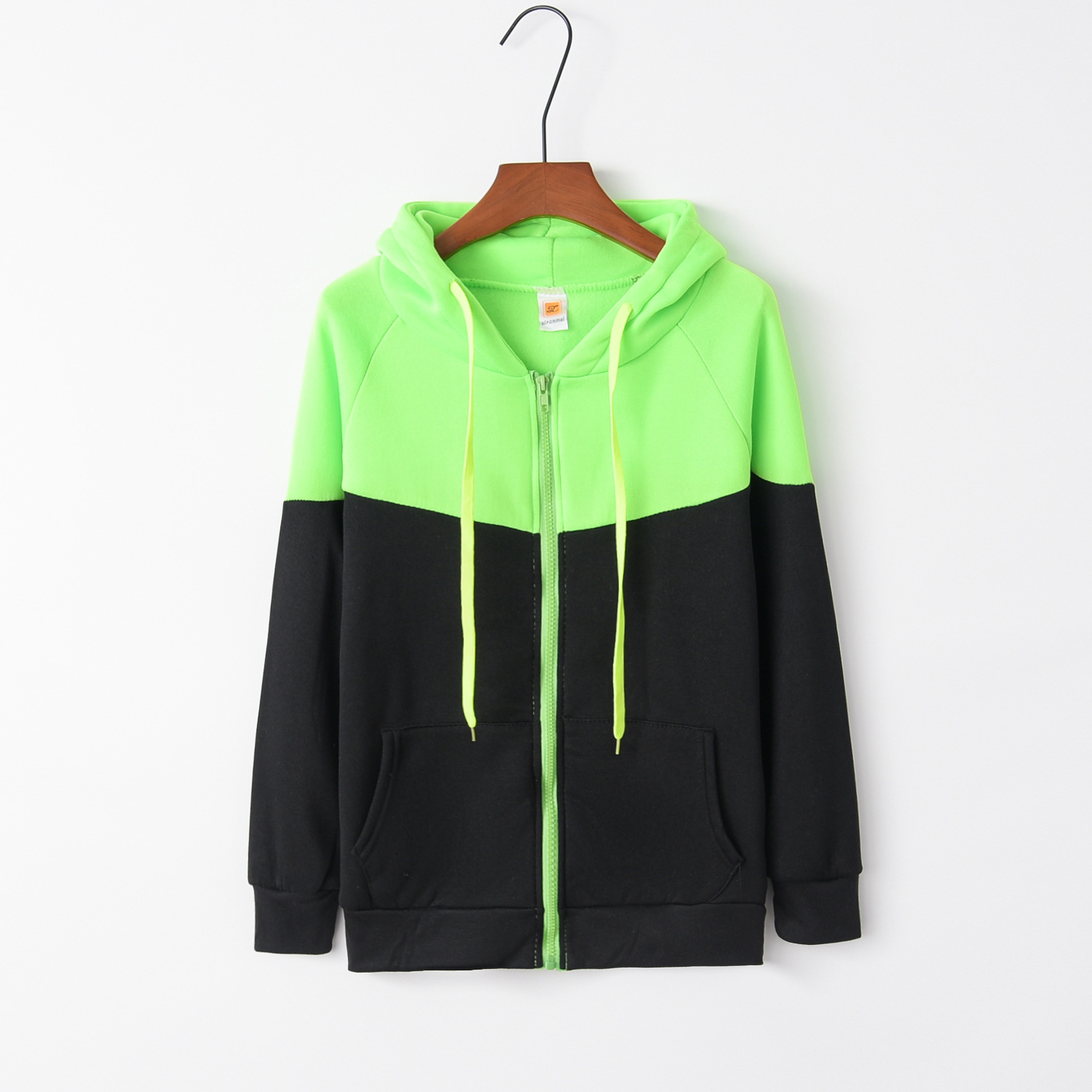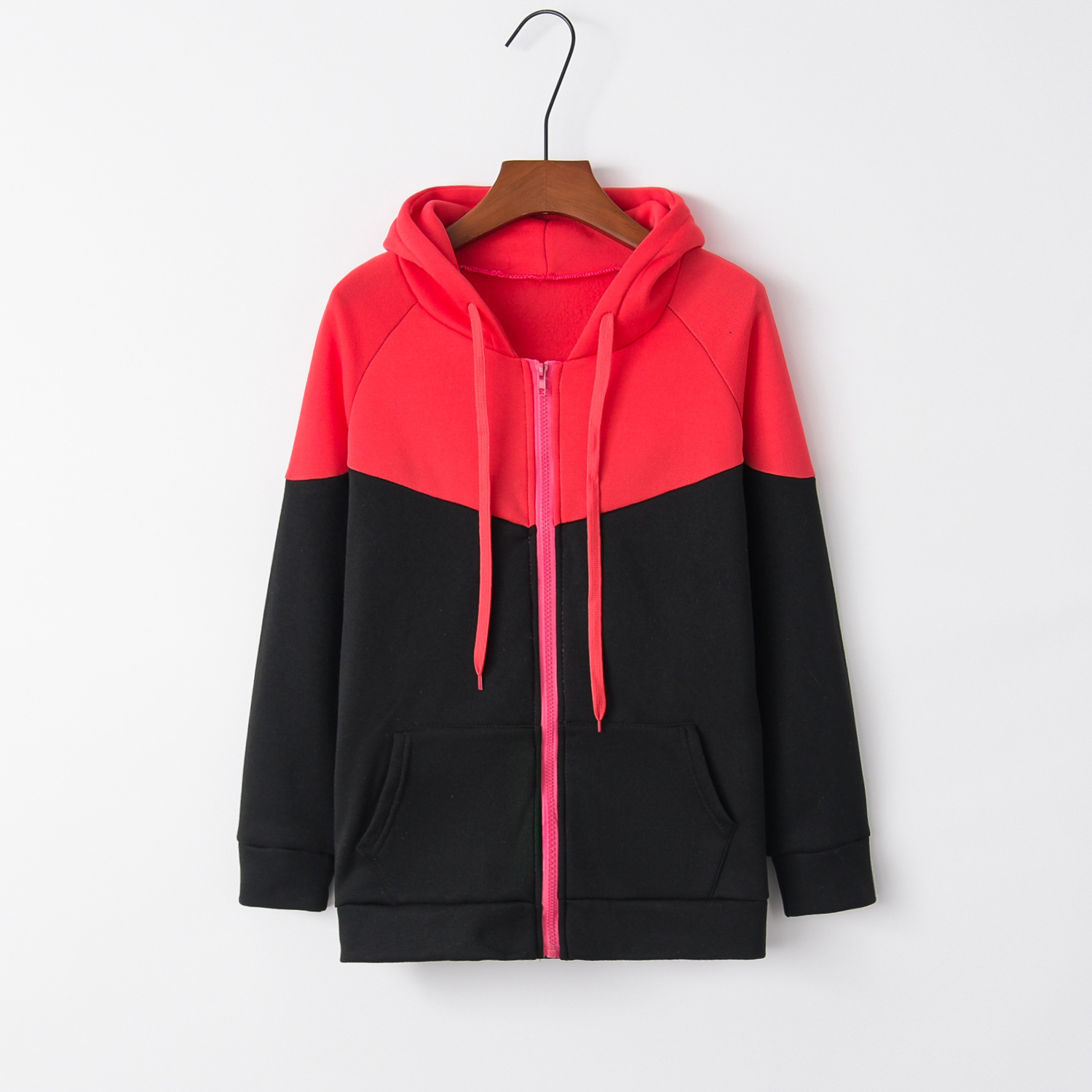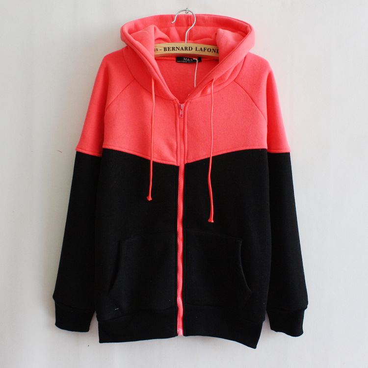 Contrast Color Hooded Cardigan Zipper Pocket Fleece Sweater