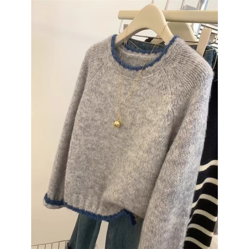 Contrast Color Knitted Collar Round Neck Sweater