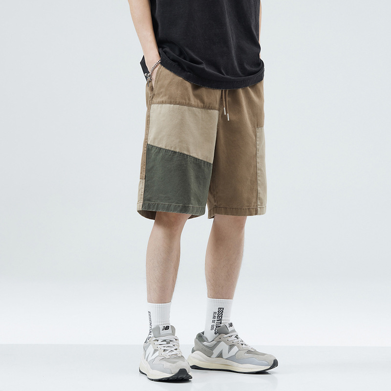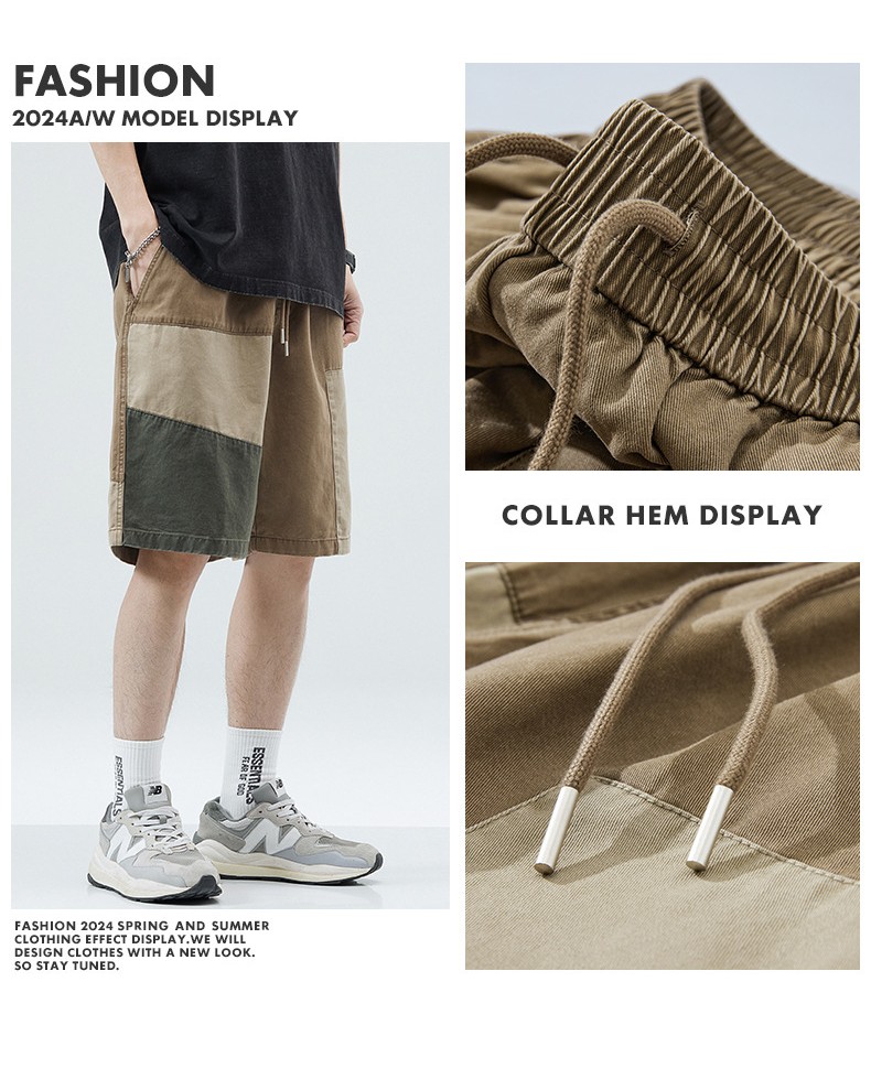 Contrast Color Outer Wear Cropped Casual Pants Khaki