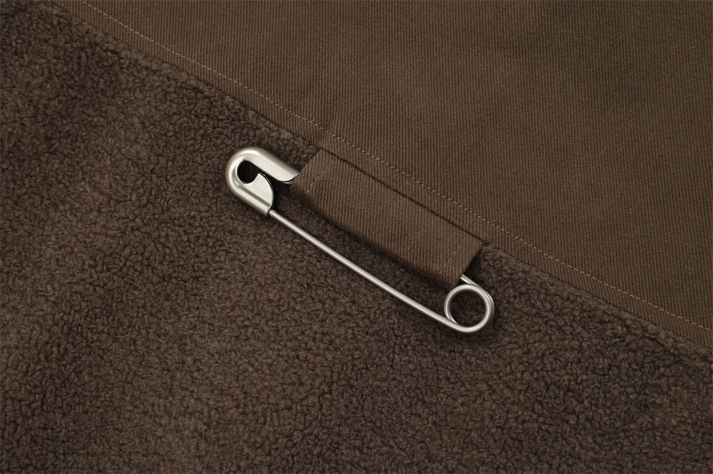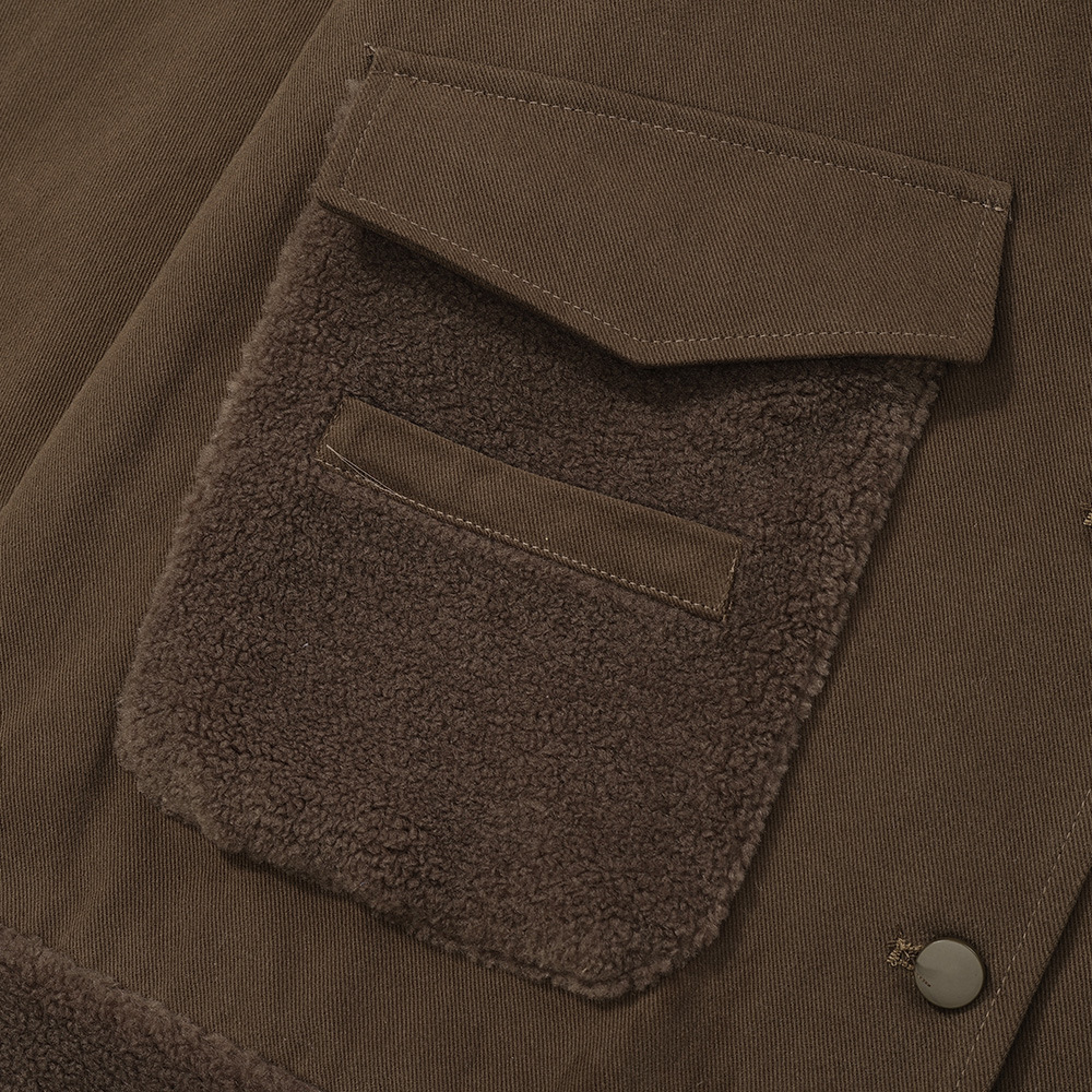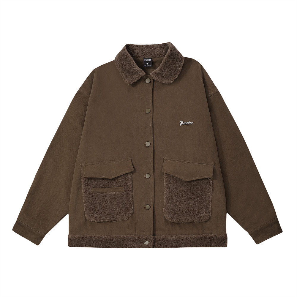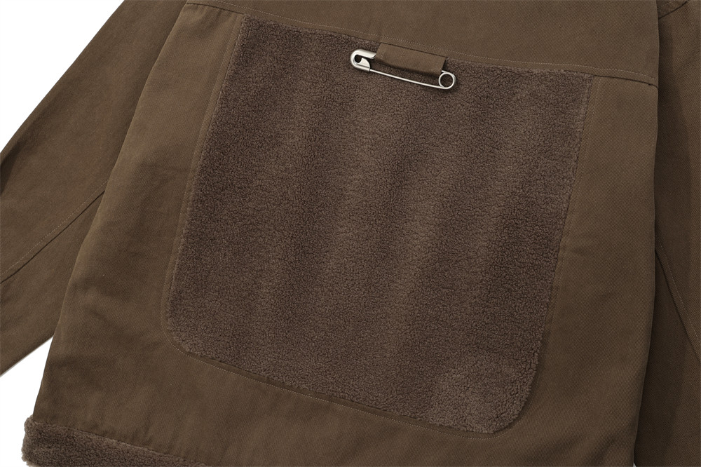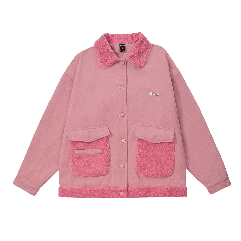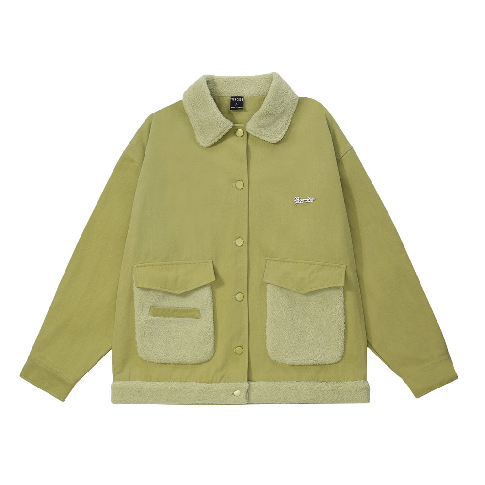 Contrast Color Pocket Stitching Lamb Wool Polo Collar Jacket