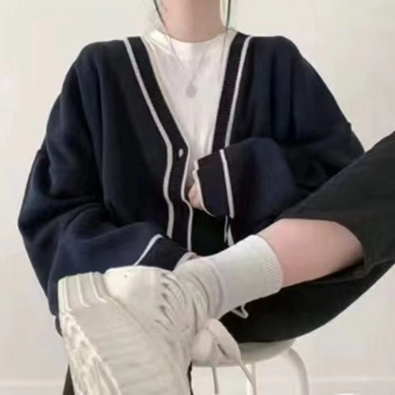 Contrast Color V-neck Knitted Cardigan Sweater Coat