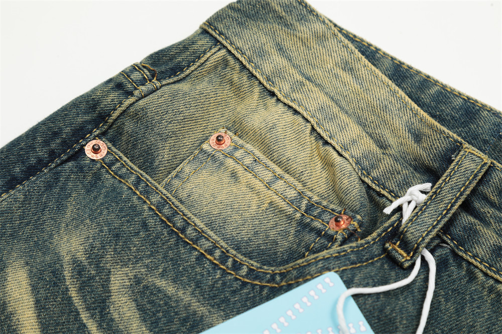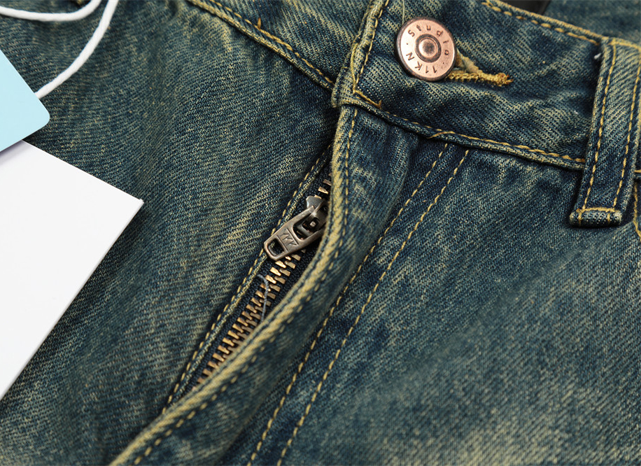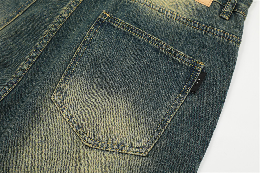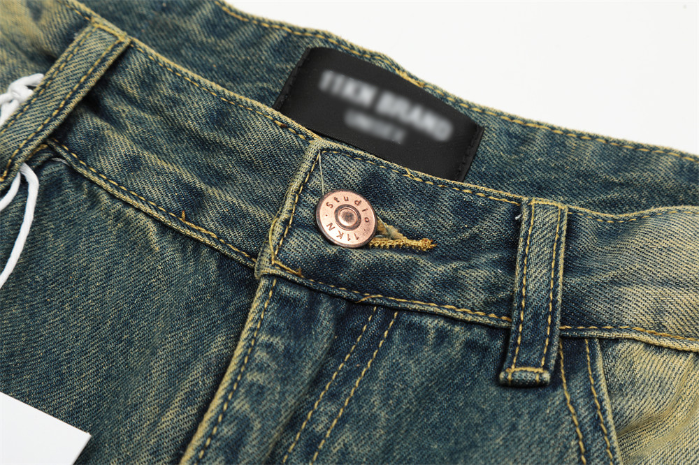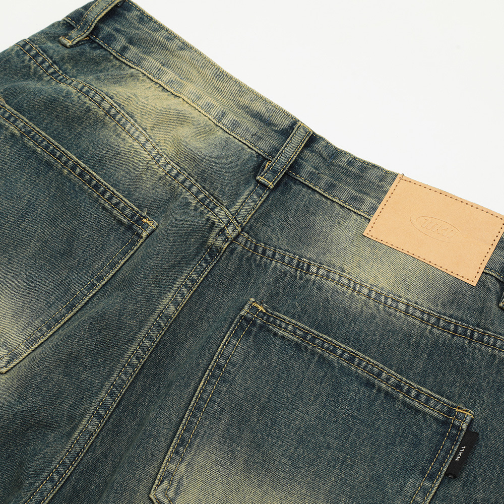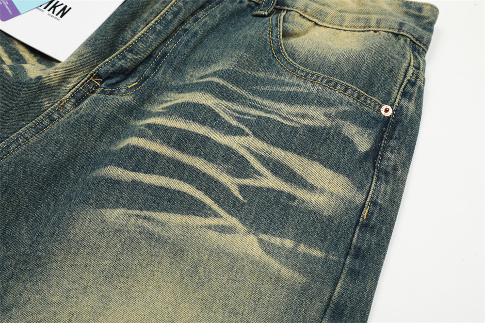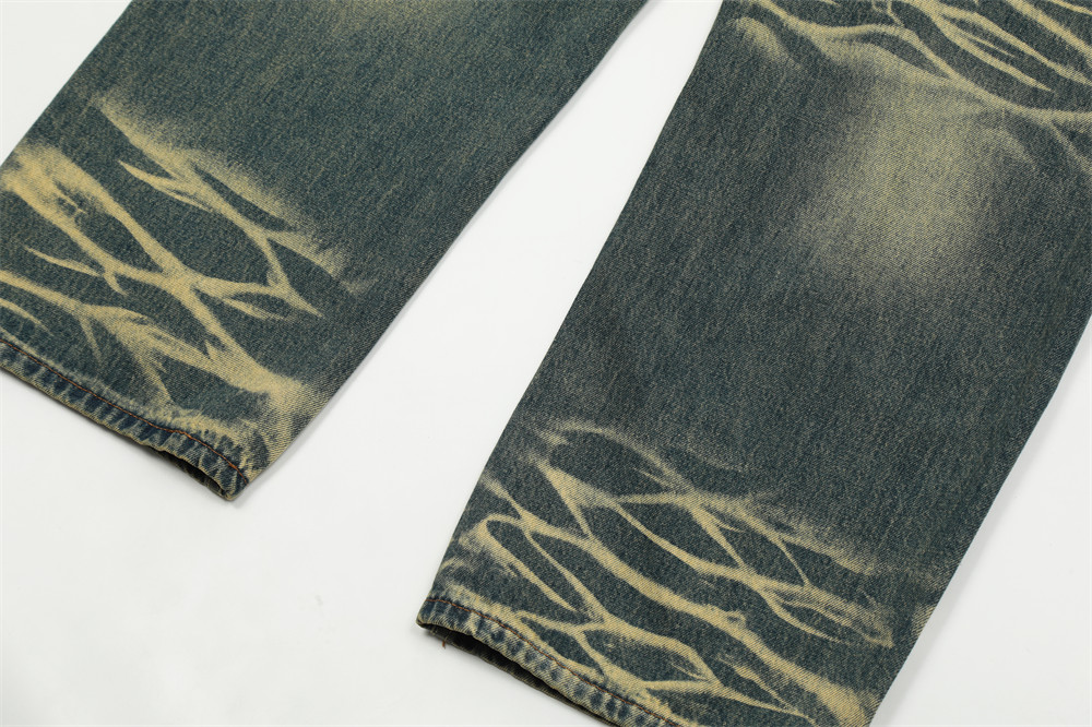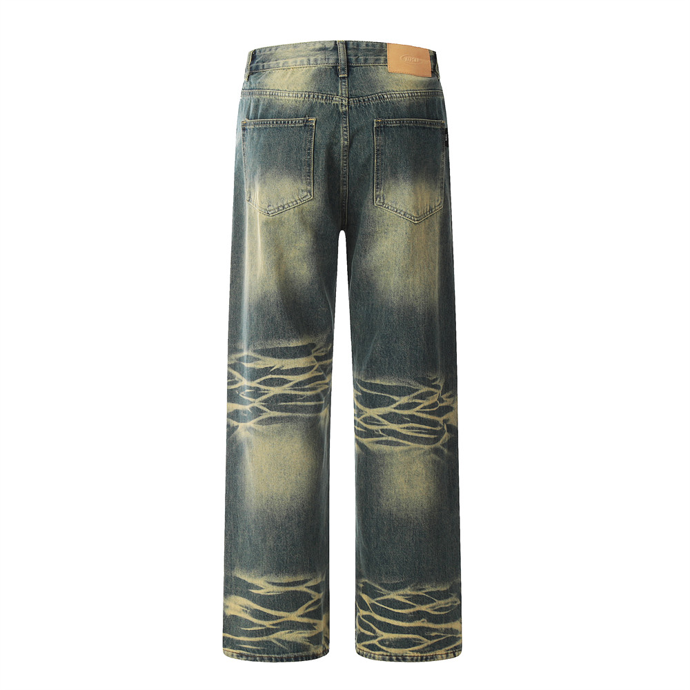 Contrast Color Washed Worn Jeans Men