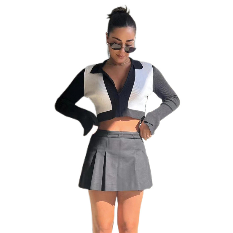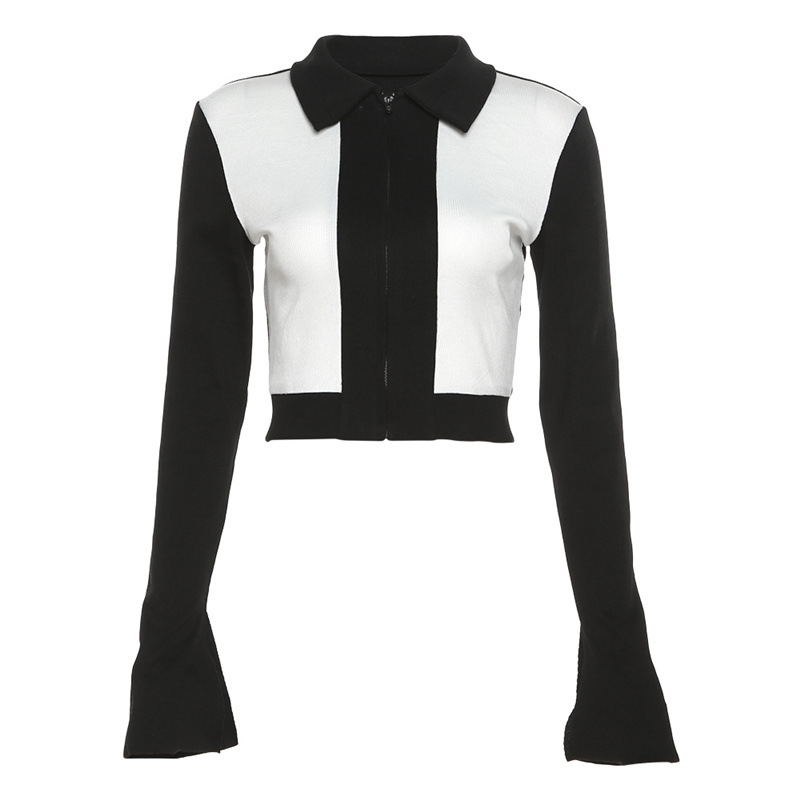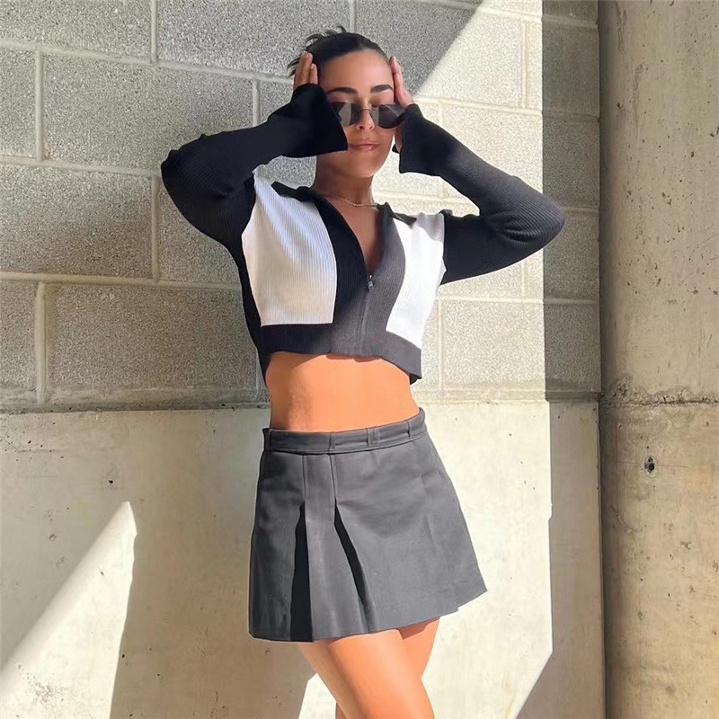 Contrast Color Zipper Coat For Women