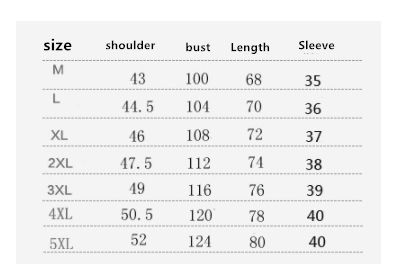 Size: M, L, XL, 2XL, 3XL, 4XL, 5XL