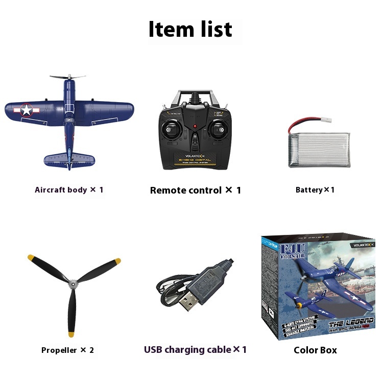 Remote control * 1+manual * 1+blade * 1+USB charging cable * 1+battery * 1+aircraft body * 1