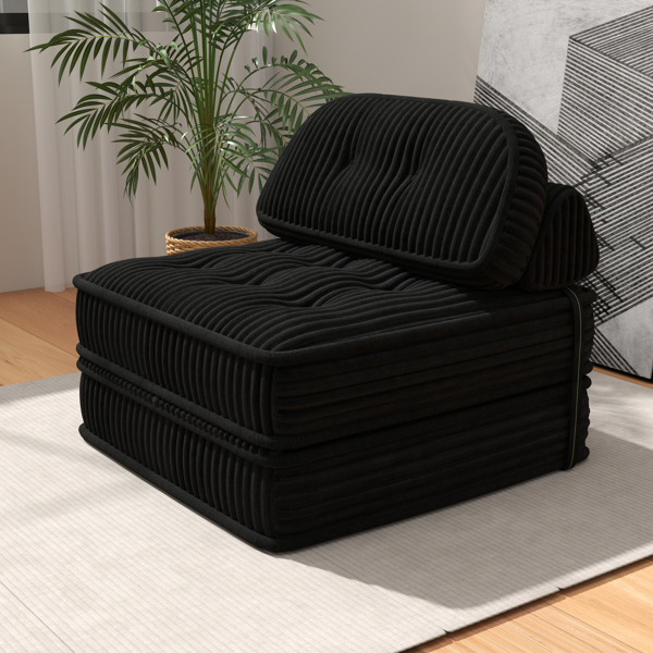 Convertible Corduroy Lounge Chair With Tufted Design, Full Foam Support, Fold-Out Sleeper & Adjustable Arc Pillow, Compressed Sofa Chair For Living Room Or Bedroom