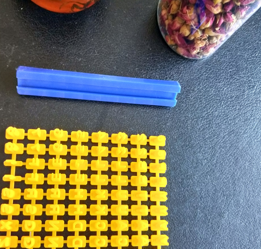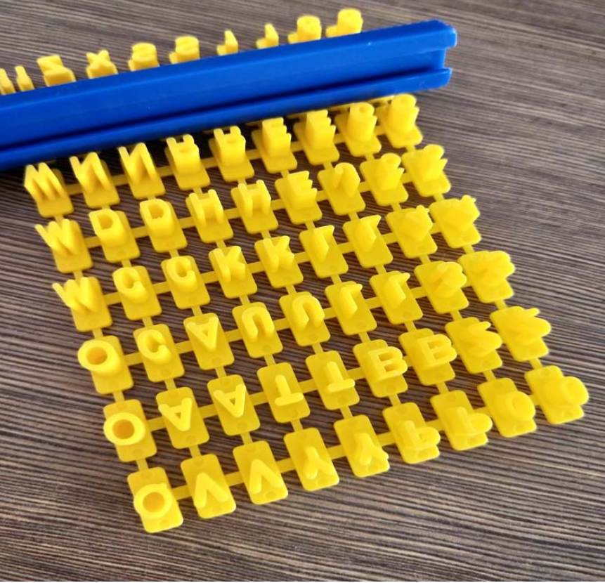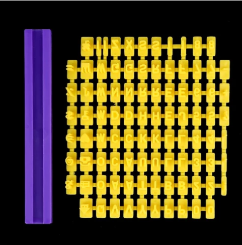 Parts: English letters, numbers plus a slat