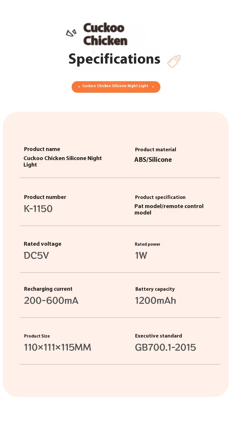 Light color: ordinary seven-color chicken night light, remote control seven-color chicken night light