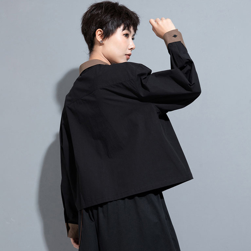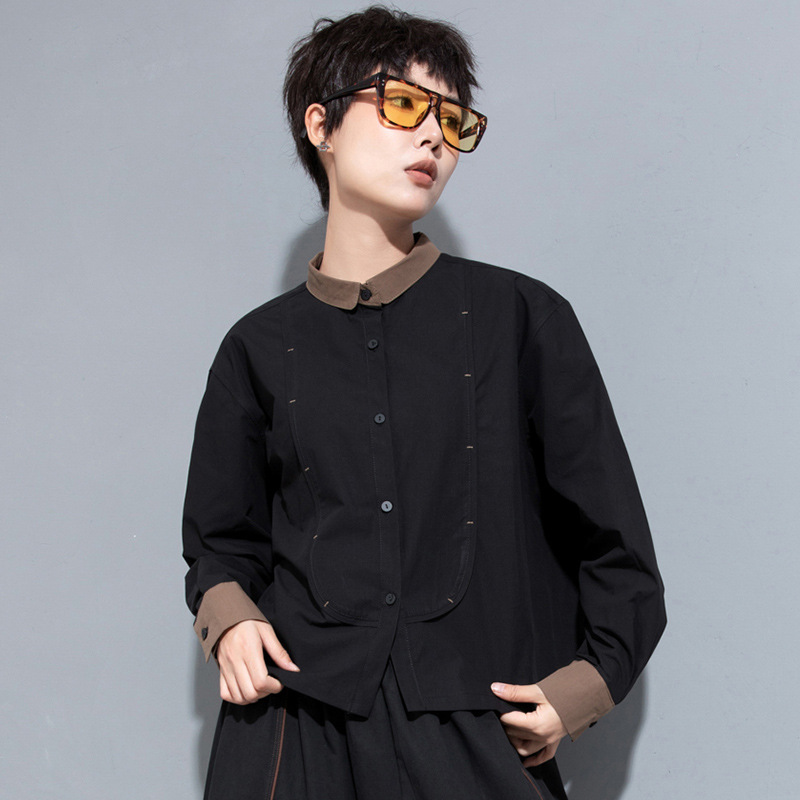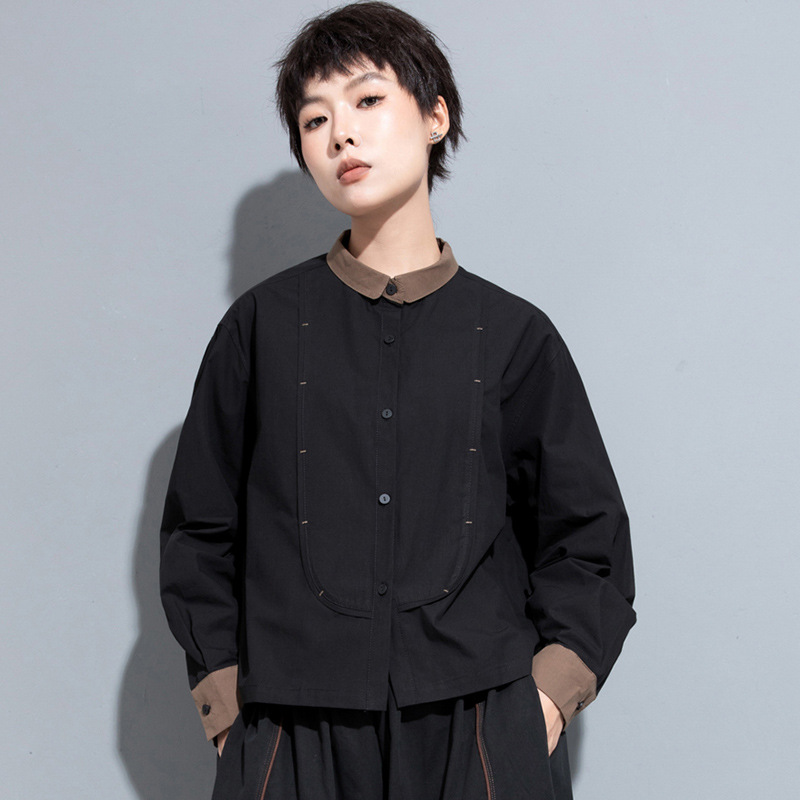 Cool Contrast Color Stitching Long-sleeved Shirt Women