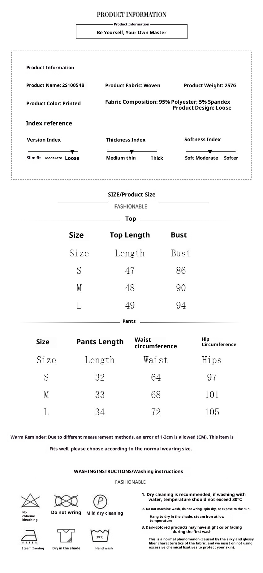 Sizes: S, M, L