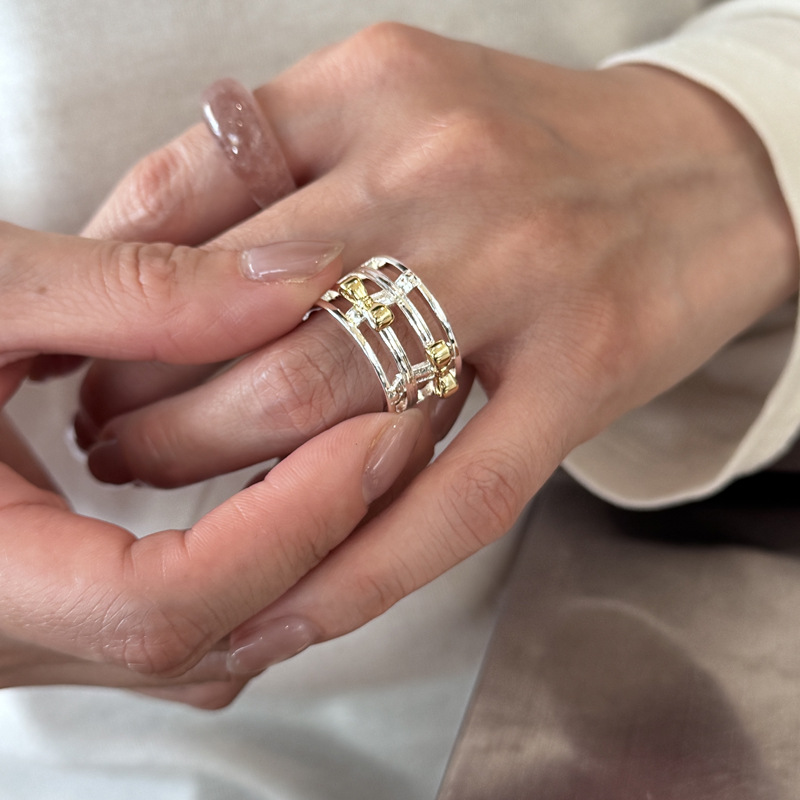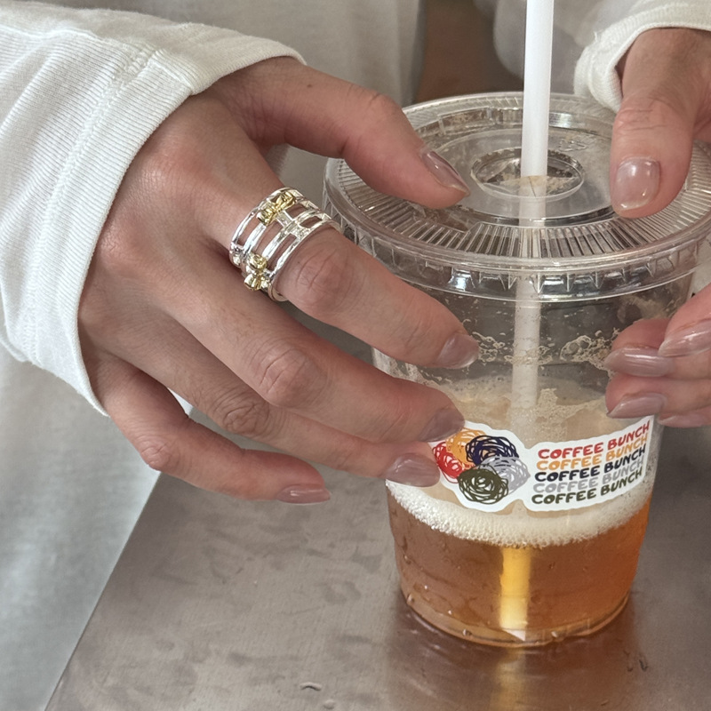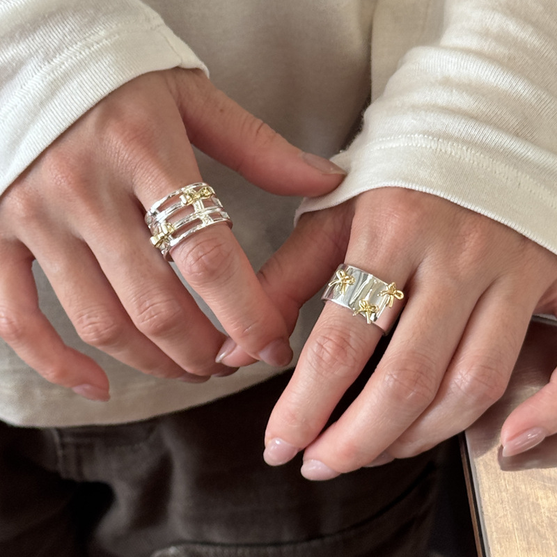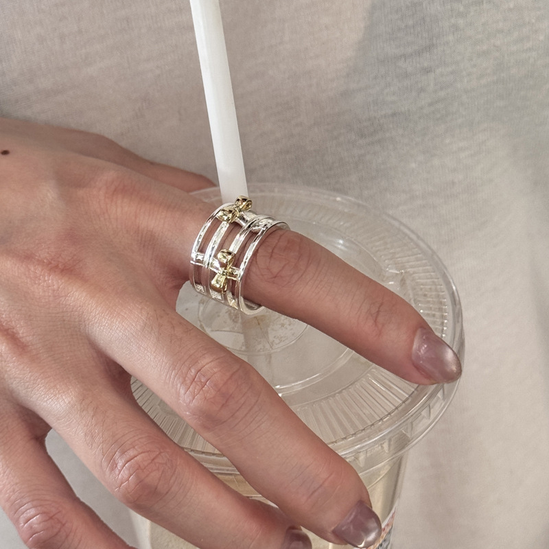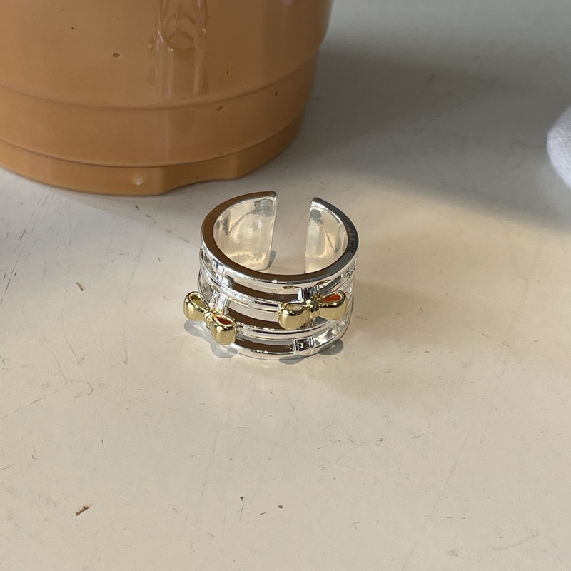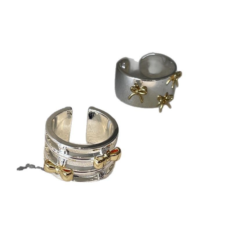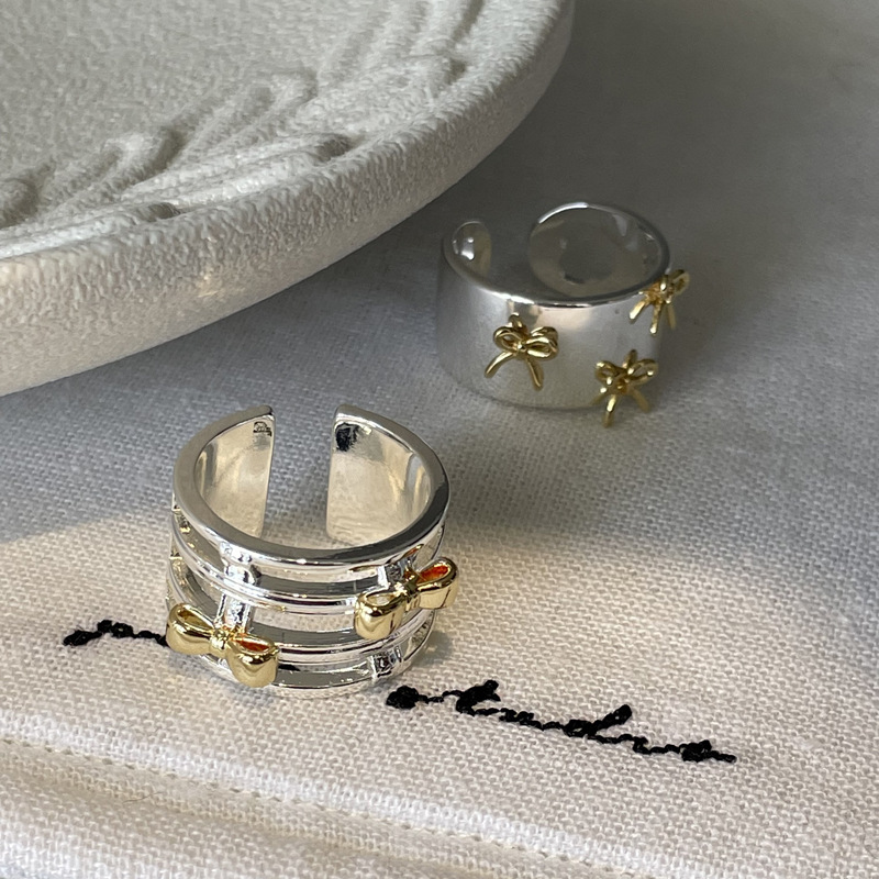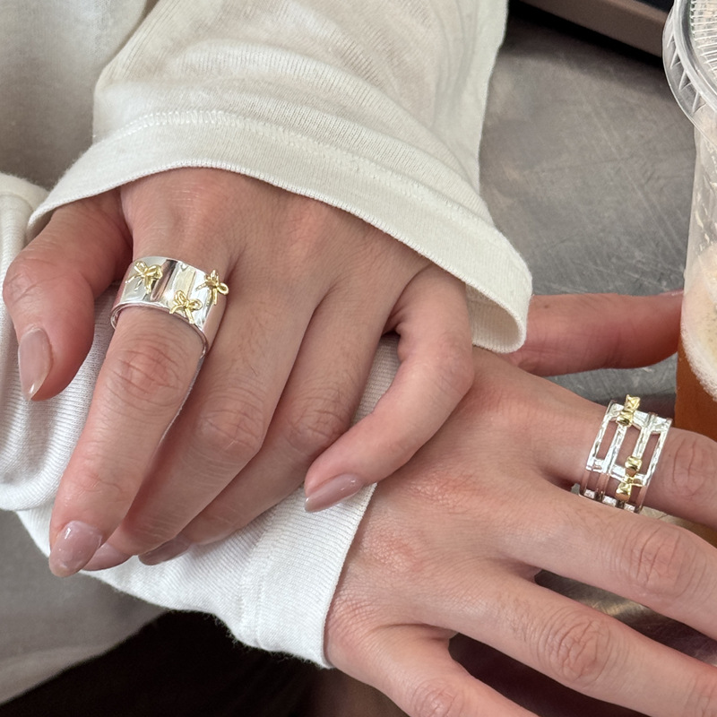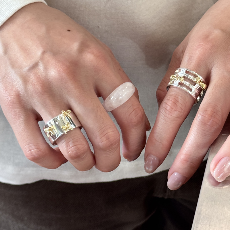 Color: two-tone hollow bow ring, two-tone bow ring, berry pink natural stone ring (No. 8), white crystal ring (No. 8), light pink natural stone ring (No. 8)
