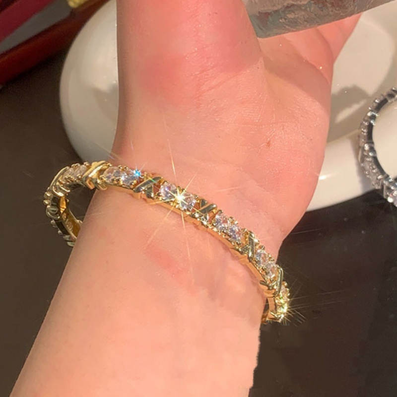 Cool Style Light Luxury X Letter Zircon Bracelet Design Open