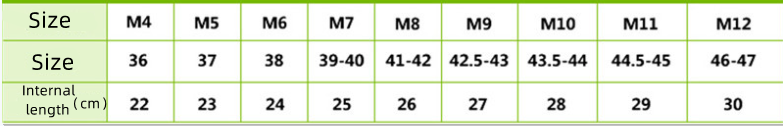 Size: M4=35/, M5=37, M6=38, M7=39/40, M8=41/42, M9=43, M10=44, M11=45