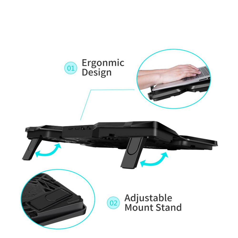 1. Strong heat dissipation performance: four powerful fans with LED and two fan switches can quickly adjust the fan speed;