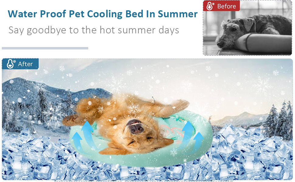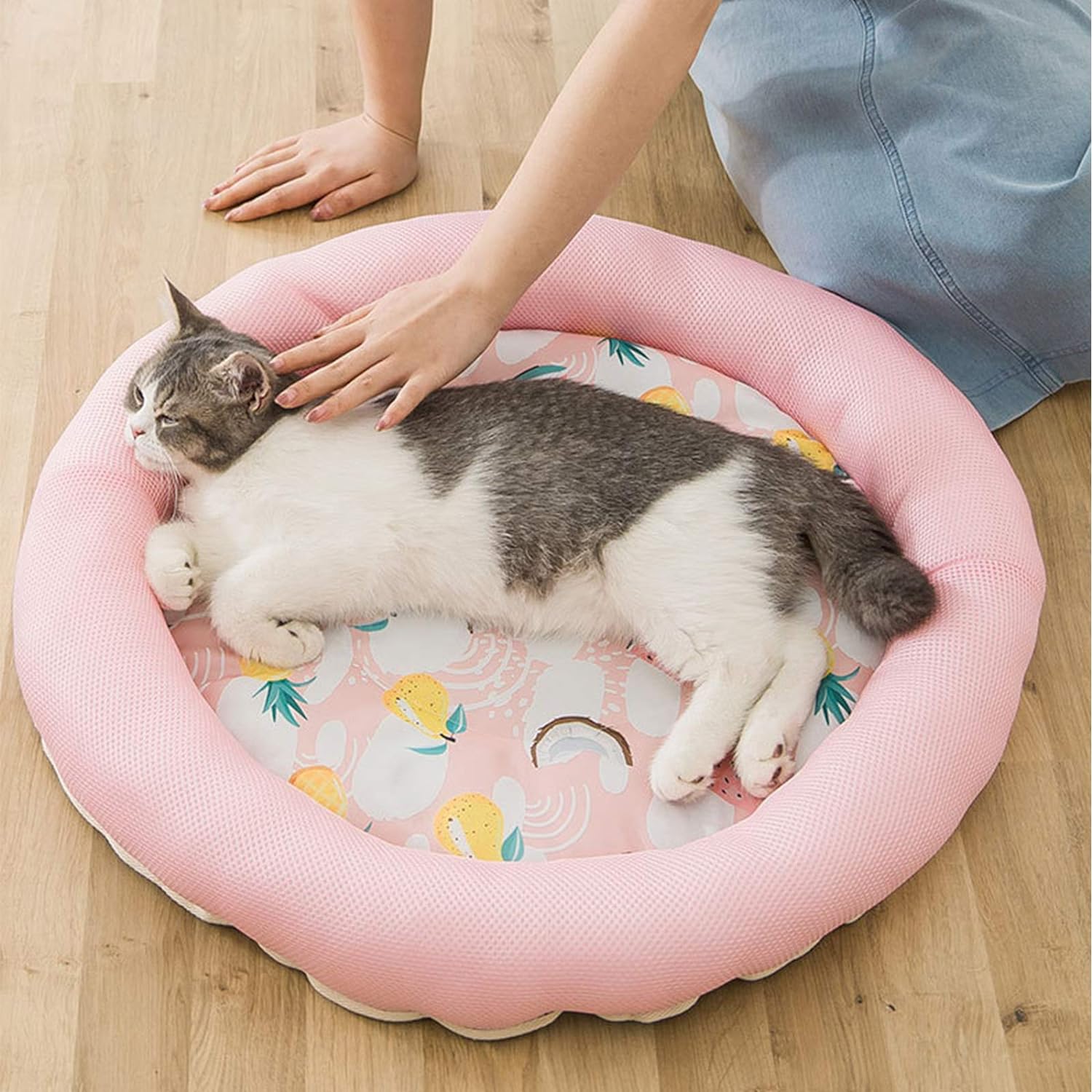 Cooling Dog Bed Soft Summer Ice Pet Pad Cushion For Small Dog Sleeping Round Breathable Mat With Waterproof Cover And Bottom Non-Slip Back Washable