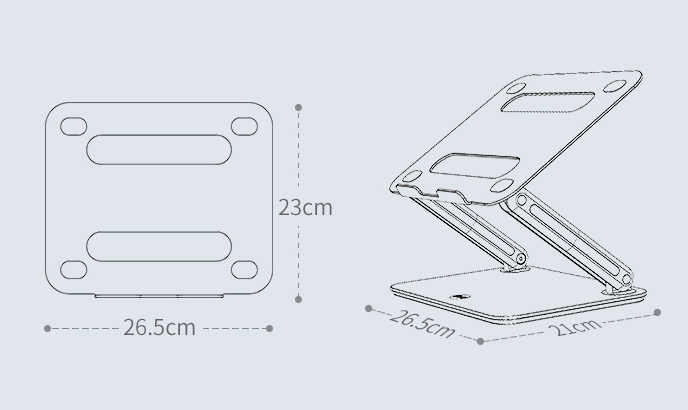 2. Protective stability and foldability: The sturdy adjustable laptop stand is sturdy and can support a weight of 13 pounds (6 kg); the rubber on the stand is firmly adhered to ensure that the laptop is stable on the stand and prevents scratches. Foldable to save space, easy to store, and designed with a handle hole for easy portability.