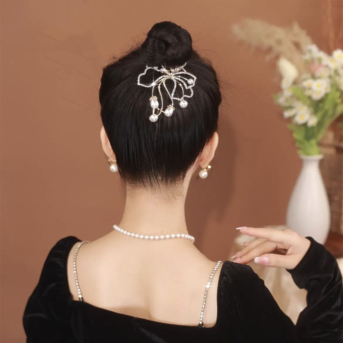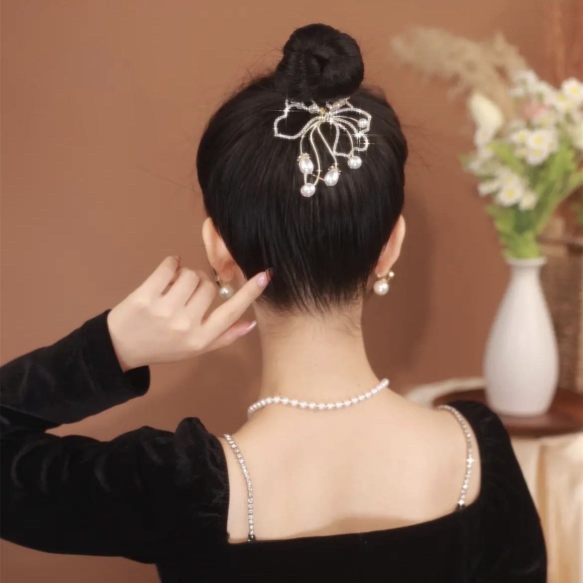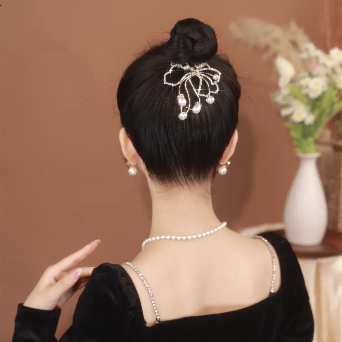 Color: glittering pearl horsetail buckle